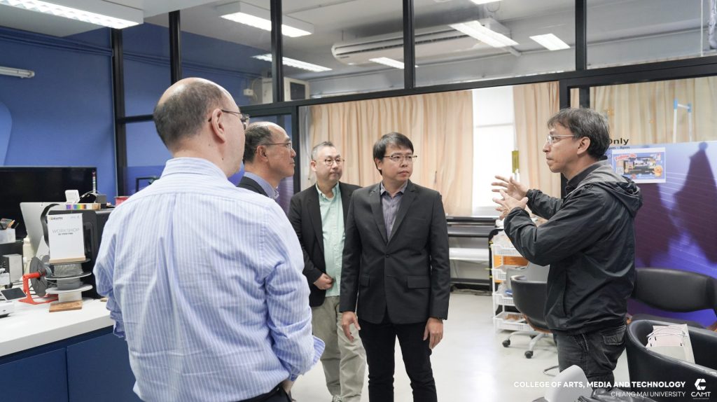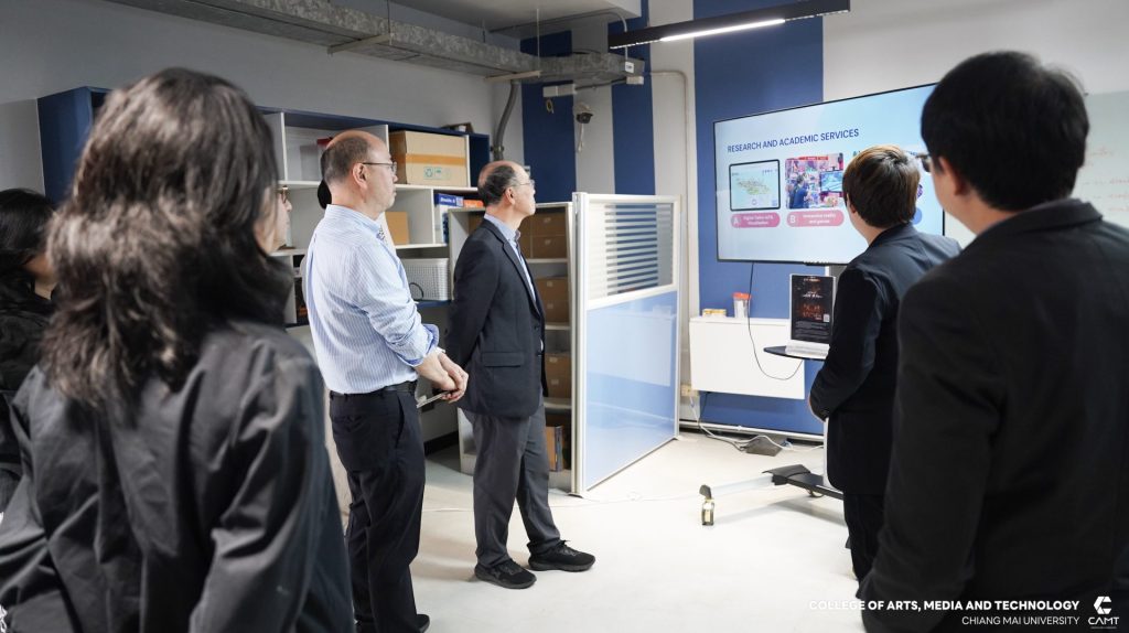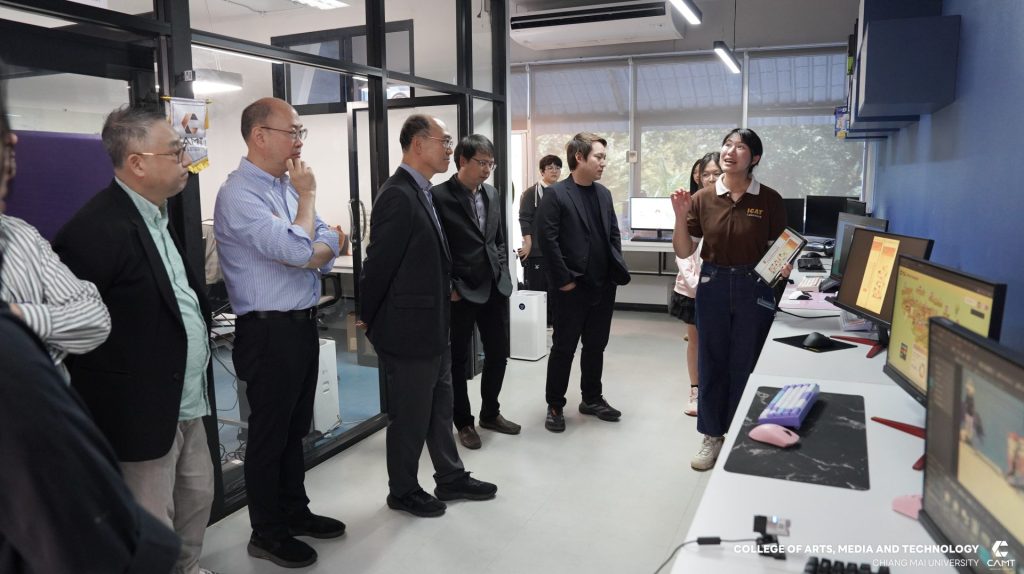 วิทยาลัยศิลปะ สื่อ และเทคโนโลยี มหาวิทยาลัยเชียงใหม่ นำโดยผู้ช่วยศาสตราจารย์ ดร.วรวิชญ์ จันทร์ฉาย คณบดี พร้อมด้วยผู้ช่วยศาสตราจารย์ ดร.จิราวิทย์ ญาณจินดา รองคณบดี ผู้ช่วยศาสตราจารย์ ดร.อรุษ คุณเขต ผู้ช่วยคณบดี อาจารย์ ดร.เทพฤทธิ์ สินธำรงรักษ์ เลขานุการสาขาวิชาดิจิทัลเกม และอาจารย์ ดร.ศุภรา กรุดพันธ์ อาจารย์ประจำสาขาดิจิทัลเกม ให้การต้อนรับ Professor Wi, Jong-Hyun Dean. , Professor Lee, Il-Han, Professor Jin, Young-ki, Professor Ku, Bon-Sung, Professor Kim, Eun-bi, Professor Lee, Ho-Jin และ Professor Lee, Ji-Young ผู้แทนจาก Virtual Convergence College, Chung-Ang University สาธารณรัฐเกาหลีใต้ ในโอกาสเข้าศึกษาดูงานด้านการจัดการเรียนการสอน และ Lab ฝึกประสบการณ์การทำงาน (Experience Studio) ของวิทยาลัยศิลปะ สื่อ และเทคโนโลยี มหาวิทยาลัยเชียงใหม่ พร้อมทั้งหารือความร่วมมือทางวิชาการ โดยมีเป้าหมายหลักในการยกระดับคุณภาพการศึกษาในระดับนานาชาติ ได้แก่ การส่งเสริมการพัฒนาหลักสูตรระยะสั้น (Microdegree Program) ที่ตอบโจทย์ความต้องการของตลาดแรงงานในปัจจุบัน และการร่วมมือครั้งสำคัญในการพัฒนา global startup ร่วมกัน