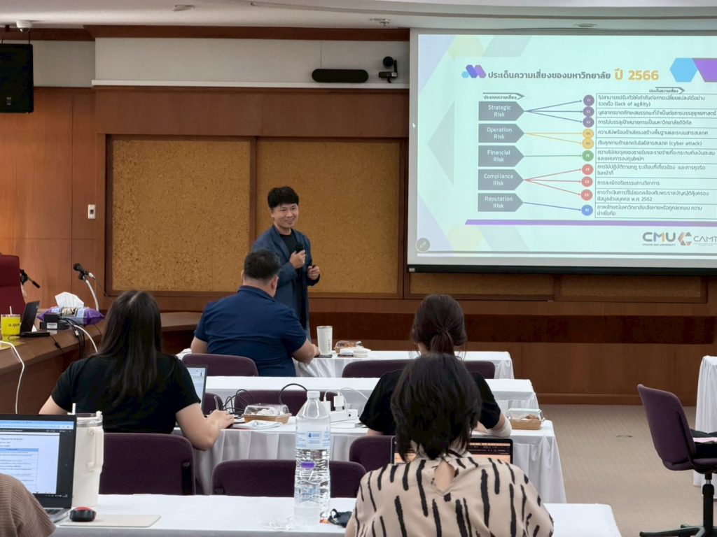 ศูนย์การพัฒนาองค์ความรู้และการจัดการนวัตกรรม (Knowledge and Innovation Development: KIND) วิทยาลัยศิลปะ สื่อ และเทคโนโลยี มหาวิทยาลัยเชียงใหม่ นำโดยผู้ช่วยศาสตราจารย์ ดร.จิรพัฒน์ วานิชวัฒนโกศล อาจารย์ประจำสาขาการจัดการสมัยใหม่ และเทคโนโลยีสารสนเทศ พร้อมด้วยคณะทำงาน ดำเนินกิจกรรมการเตรียมความพร้อมสู่มาตรฐานระบบการจัดการองค์ความรู้ ISO 30401 :2018 ภายใต้โครงการพัฒนากระบวนการจัดการองค์ความรู้ของสำนักหอสมุดสู่มาตรฐานสากล ให้แก่ ผู้บริหารและบุคลากรตัวแทนจากส่วนงานที่ร่วมขับเคลื่อนการจัดการความรู้ของสำนักหอสมุด มหาวิทยาลัยเชียงใหม่ ซึ่งการจัดกิจกรรมครั้งนี้ จะเป็นการฝึกอบรมเชิงปฏิบัติการ ในหัวข้อเรื่อง การวิเคราะห์องค์กรและการวิเคราะห์ความเสี่ยงขององค์กร (ครั้งที่ 2) เป็นการวิเคราะห์ความเสี่ยงขององค์กร และแผนปฏิบัติงานด้านการจัดการความรู้ (KM Action Plan) โดยมีผู้ร่วมกิจกรรมจำนวน 20 ท่าน ในวันพุธที่ 8 เมษายน 2569 ณ ห้องประชุม 1 ชั้น 5 สำนักหอสมุด มหาวิทยาลัยเชียงใหม่