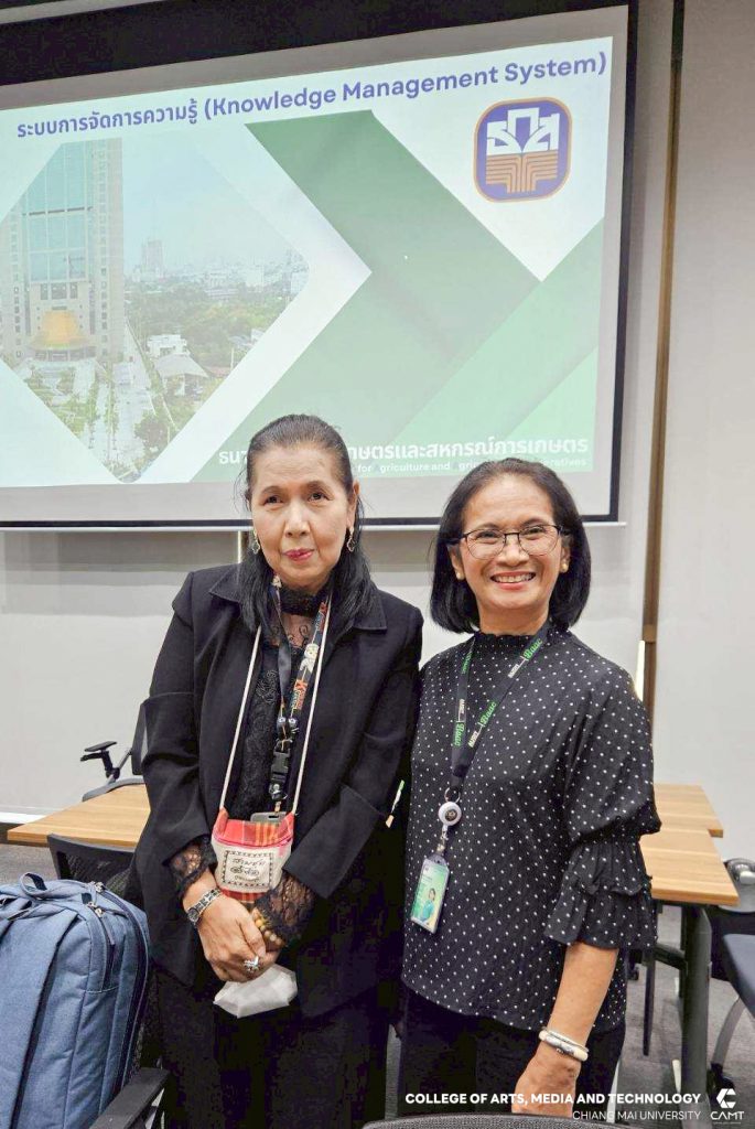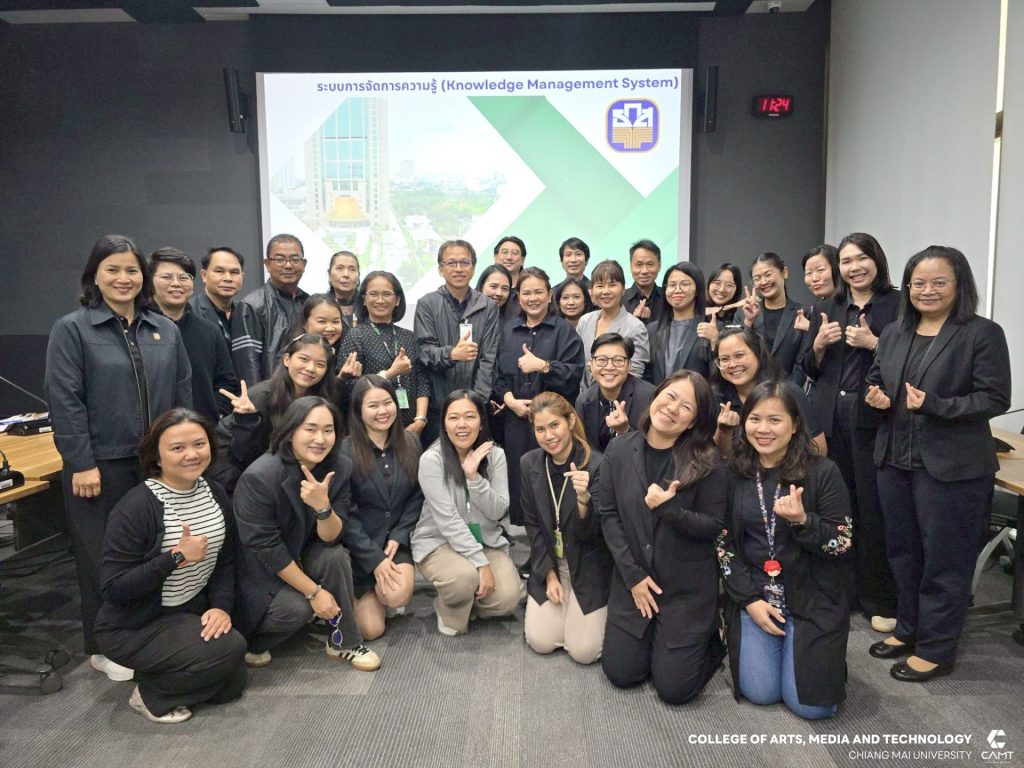 ศูนย์การพัฒนาองค์ความรู้และนวัตกรรม (Knowledge and Innovation Development: KIND) วิทยาลัยศิลปะ สื่อ และเทคโนโลยี มหาวิทยาลัยเชียงใหม่ ร่วมกับ ธนาคารเพื่อการเกษตรและสหกรณ์การเกษตร (ธ.ก.ส) โดยมี ผู้ช่วยศาสตราจารย์ ดร.อัจฉรา คำอักษร ผู้ปฏิบัติหน้าที่ช่วยคณบดี ด้านการพัฒนาองค์ความรู้และนวัตกรรม/ หัวหน้าศูนย์การพัฒนาองค์ความรู้และนวัตกรรม (Knowledge and Innovation Development: KIND) พร้อมด้วยผู้ช่วยศาสตราจารย์ ดร.เฉลิมพล  คงจิตต์ และคุณธณัฐพร  จันทร์แสง ดำเนินกิจกรรม  “การตรวจประเมินภายในตามกรอบมาตรฐาน ISO 30401: 2018” ให้แก่ ผู้บริหารและบุคลากรตัวแทนจากส่วนงานที่ร่วมขับเคลื่อนการจัดการความรู้ขององค์กร ทั้งจากฝ่ายกิจการสาขาภาค และสำนักงานใหญ่ เพื่อพัฒนาความรู้และเตรียมพร้อมพัฒนาระบบฯ สู่การรับรองมาตรฐาน ISO 30401 : 2018 ระหว่างวันที่ 12-13 มกราคม 2569  ณ ธนาคารเพื่อการเกษตรและสหกรณ์การเกษตร (ธ.ก.ส) กรุงเทพมหานคร