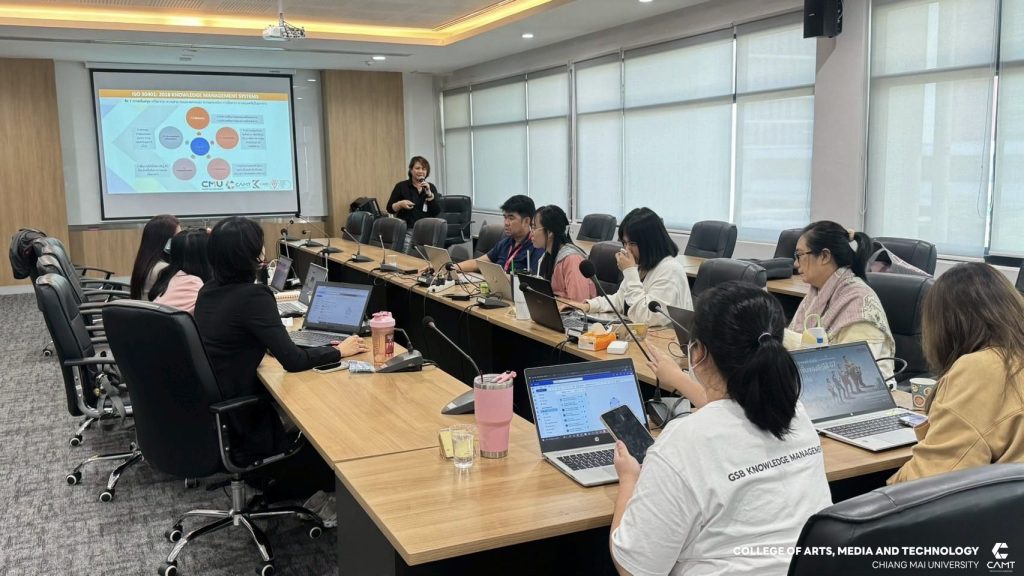 ศูนย์การพัฒนาองค์ความรู้และการจัดการนวัตกรรม (Knowledge and Innovation Development: KIND) วิทยาลัยศิลปะ สื่อ และเทคโนโลยี มหาวิทยาลัยเชียงใหม่ ร่วมกับ ธนาคารออมสิน สำนักงานใหญ่ นำโดย ผู้ช่วยศาสตราจารย์ ดร.อัจฉรา คำอักษร ผู้ปฏิบัติหน้าที่ช่วยคณบดี ด้านการพัฒนาองค์ความรู้และการจัดการนวัตกรรม/ หัวหน้าศูนย์การพัฒนาองค์ความรู้และนวัตกรรม (Knowledge and Innovation Development: KIND) พร้อมด้วย รองศาสตราจารย์ ดร.รัฐพล วุฒิการณ์ และคณะทำงาน ดำเนินการจัดอบรมเชิงปฏิบัติการภายใต้โครงการ “หลักสูตรการพัฒนาและเสริมสร้างขีดความสามารถด้านการจัดการความรู้ ” ให้แก่ ทีมงานด้านการจัดการความรู้ ธนาคารออมสิน สำนักงานใหญ่ เพื่อยกระดับระบบการจัดการความรู้ให้สอดคล้องกับ มาตรฐานสากล ISO 30401:2018 และขับเคลื่อนองค์กรสู่การเป็น องค์กรแห่งการเรียนรู้อย่างยั่งยืน (Learning Organization) ในระหว่างวันที่ 16-17 ตุลาคม 2568 โดยกิจกรรมในครั้งนี้ แบ่งการอบรมออกเป็น 2 ช่วงเวลา