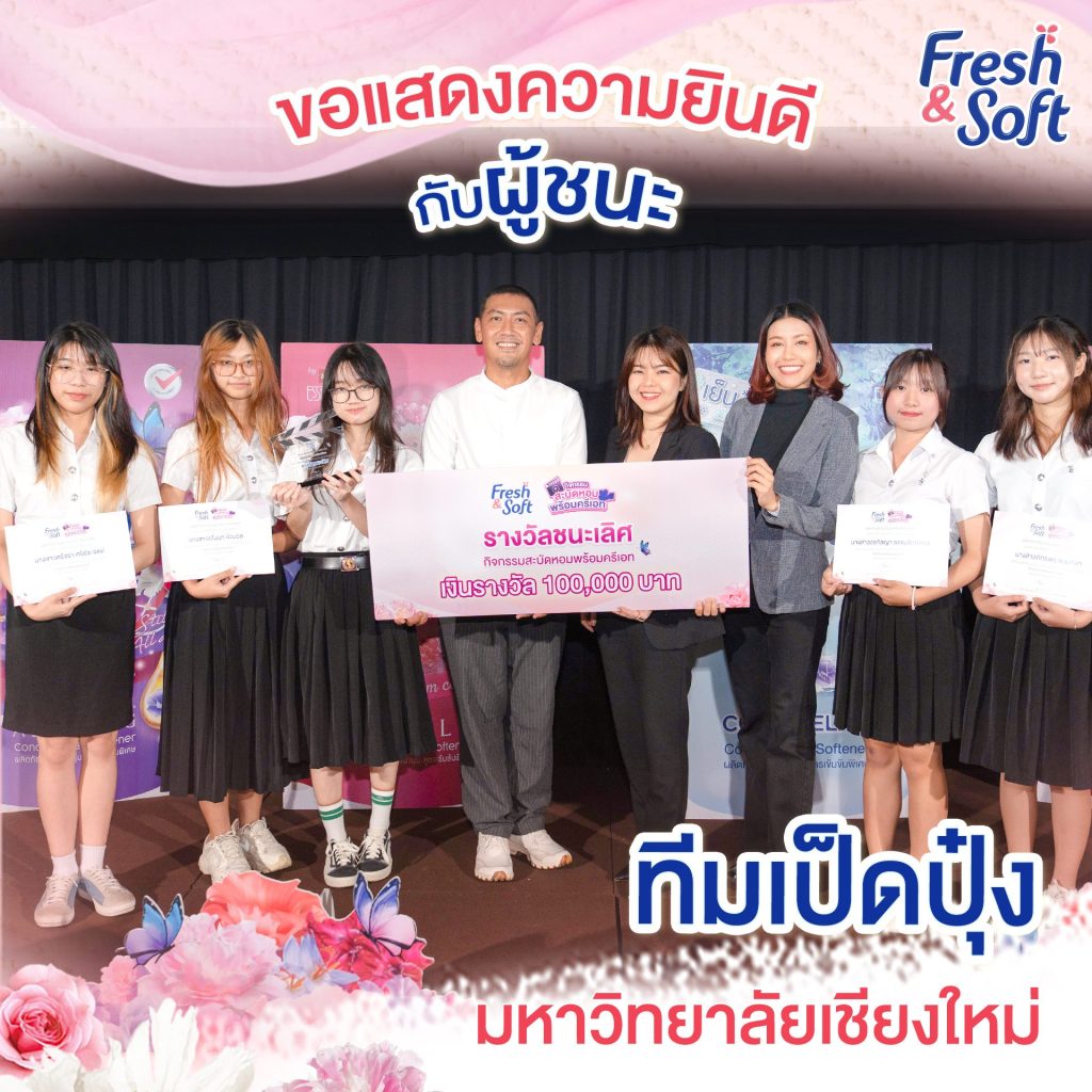 วิทยาลัยศิลปะ สื่อ และเทคโนโลยี มหาวิทยาลัยเชียงใหม่ ขอแสดงความยินดีกับนักศึกษาสาขาแอนนิเมชันและวิชวลเอฟเฟกต์ ที่ได้รับรางวัลโครงการประกวดคลิปวิดีโอสั้น (กิจกรรมสะบัดหอมพร้อมครีเอท) ในหัวข้อ “เรื่องราวความหอมของ Fresh & Soft ในรูปแบบของคุณ” ซึ่งจัดโดยบริษัท Fresh & Soft Thailand นำโดย