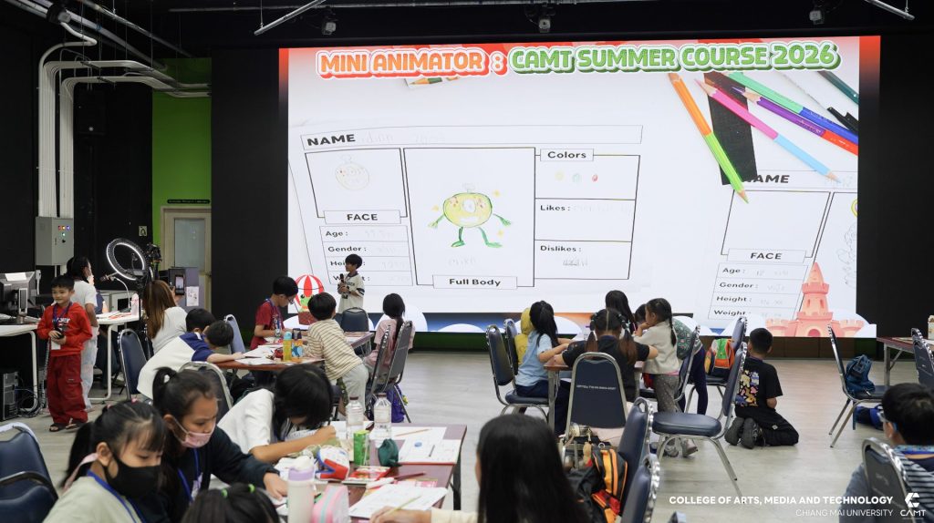 ปิดเทอมนี้ไม่มีเหงา! วิทยาลัยศิลปะ สื่อ และเทคโนโลยี มช. จัดเต็มความสนุกสไตล์ Digital Native กับโครงการ CAMT SUMMER COURSE 2026 พาน้องๆ ประถม 30 คน มาอัปสกิลศิลปะผสมเทคโนโลยีในค่าย “MINI ANIMATOR รุ่นที่ 1” โดยมุ่งเน้นการเรียนรู้ทักษะ Art & Tech พร้อมทั้งฝึกทักษะ Creative Mindset ให้น้องๆ ได้ฝึกคิดนอกกรอบ เรียนรู้ผ่านการลงมือทำจริง (Experiential Learning) เพื่อสร้างความคิดสร้างสรรค์ และการทำงานร่วมกับเพื่อนๆ รวมทั้งกิจกรรมเรียนรู้นอกสถานที่เพื่อให้นักเรียนได้ไปหาแรงบันดาลใจและฝึกการประยุกต์ใช้จริง โดยกิจกรรมดังกล่าวจัดขึ้นระหว่างวันที่ 9 – 13 มีนาคม 2569 ณ วิทยาลัยศิลปะ สื่อ และเทคโนโลยี มหาวิทยาลัยเชียงใหม่