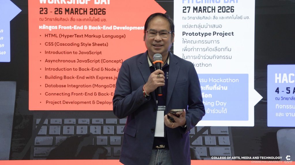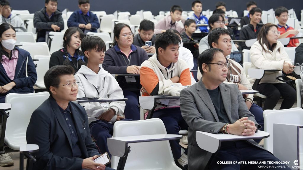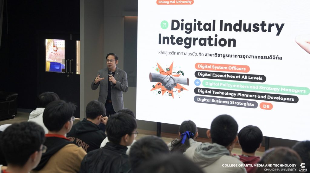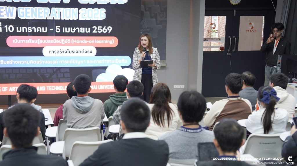ซึ่งกิจกรรมปฐมนิเทศในครั้งนี้ ได้รับเกียรติจากผู้ช่วยศาสตราจารย์ ดร.จิราวิทย์ ญาณจินดา รองคณบดีวิทยาลัยศิลปะ สื่อ และเทคโนโลยี เป็นประธานในพิธีเปิด พร้อมด้วย ผู้ช่วยศาสตราจารย์ ดร.จิรพิพัฒน์ ธัญพงษ์ภัทร อาจารย์ประจำหลักสูตรบูรณาการอุตสาหกรรมดิจิทัล กล่าวแนะนำเนื้อหาและรูปแบบการเรียนการสอนภายในโครงการฯ นอกจากนี้ยังได้รับเกียรติจากคุณขนิษฐา มูลพงศ์ รุ่นพี่ศิษย์เก่าผู้เชี่ยวชาญจากภาคอุตสาหกรรมซอฟต์แวร์ มาร่วมแชร์ความรู้และประสบการณ์ในหัวข้อ “จุดประกายไอเดียด้าน Technology” เพื่อสร้างแรงบันดาลใจให้กับนักเรียนในโครงการ รวมถึงกิจกรรมกระชับความสัมพันธ์โดยรุ่นพี่จากวิทยาลัยฯ ระหว่างวันที่ 10-11 มกราคม 2569 ณ วิทยาลัยศิลปะ สื่อ และเทคโนโลยี มหาวิทยาลัยเชียงใหม่