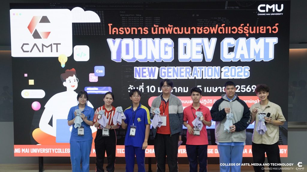 วิทยาลัยศิลปะ สื่อ และเทคโนโลยี มหาวิทยาลัยเชียงใหม่ จัดกิจกรรมปฐมนิเทศภายใต้โครงการนักพัฒนาซอฟต์แวร์รุ่นเยาว์ (Young DEV CAMT New Generation 2026) ให้แก่นักเรียนชั้นมัธยมศึกษาตอนปลายทั่วภาคเหนือ จำนวน 64 ราย โดยมุ่งเน้นการพัฒนาทักษะการเขียนโปรแกรมผ่านระบบออนไลน์และกิจกรรม Workshop เข้มข้น พร้อมฝึกฝนการนำเสนอผลงาน (Pitching) เพื่อเฟ้นหาทีมสู่สนามการแข่งขัน Hackathon ซึ่งโครงการดังกล่าวมีระยะเวลาในการดำเนินโครงการ โดยเริ่มตั้งแต่วันที่ 10 มกราคม 2569 จนถึงการแข่งขันในรอบสุดท้าย ระหว่างวันที่ 4-5 เมษายน 2569