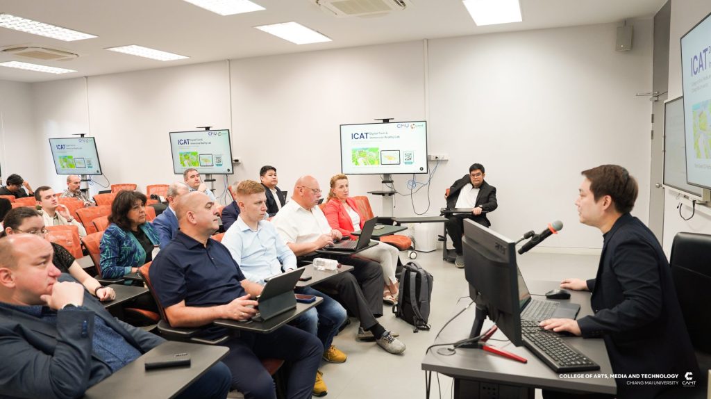 กิจกรรมในครั้งนี้ได้รับเกียรติจาก ผู้ช่วยศาสตราจารย์ ดร.ดนัยธัญ พงษ์พัชราธรเทพ รองคณบดีวิทยาลัยศิลปะ สื่อ และเทคโนโลยี พร้อมด้วย ผู้ช่วยศาสตราจารย์ ดร.สืบพงศ์ เฉินบำรุง ประธานหลักสูตรการจัดการเทคโนโลยีดิจิทัล (ระดับบัณฑิตศึกษา) เป็นประธานและผู้นำการดำเนินงาน โดยมีวัตถุประสงค์เพื่อสร้างพื้นที่แลกเปลี่ยนองค์ความรู้ระหว่างคณะผู้เชี่ยวชาญจากประเทศบัลแกเรีย ฝรั่งเศส และประเทศไทย