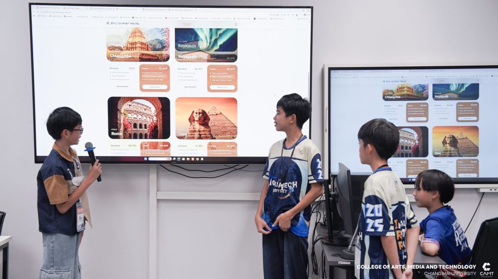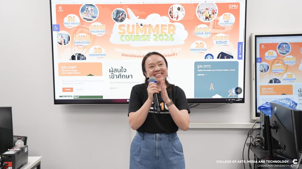 วิทยาลัยศิลปะ สื่อและเทคโนโลยี มหาวิทยาลัยเชียงใหม่ ตอกย้ำความเป็นผู้นำด้านนวัตกรรมดิจิทัล จัดโครงการ CAMT Summer Courses 2026 ค่าย “GENERATIVE AI” เพื่อเสริมสร้างศักยภาพและทักษะดิจิทัล (Digital Literacy) ให้แก่นักเรียนในระดับมัธยมศึกษาทั่วภาคเหนือ โดยกิจกรรมในครั้งนี้มุ่งเน้นให้นักเรียนได้สัมผัสประสบการณ์จริงในการใช้เทคโนโลยี AI เข้ามาช่วยในกระบวนการพัฒนาเว็บไซต์ ได้แก่ การใช้ AI ช่วยวางโครงสร้าง และออกแบบการใช้งาน UX/UI Design และการประยุกต์ใช้ AI ในการเขียนโค้ด เพื่อเพิ่มความรวดเร็วและแม่นยำในการพัฒนา โดยมีผู้ช่วยศาสตราจารย์ ดร.กฤตวยาน์ ทองคู่ อาจารย์ประจำสาขาการจัดการสมัยใหม่ และเทคโนโลยีสารสนเทศ เป็นวิทยากรหลักในการถ่ายทอดเทคนิคและกลยุทธ์การใช้ AI อย่างสร้างสรรค์ เพื่อให้เหล่านักนวัตกรรมรุ่นเยาว์ กว่า 36 คนสามารถนำความรู้ไปประยุกต์ใช้ได้จริงในยุคดิจิทัลทรานส์ฟอร์เมชัน ระหว่างวันที่ 16-17 เมษายน 2569 ณ วิทยาลัยศิลปะ สื่อ และเทคโนโลยี มหาวิทยาลัยเชียงใหม่