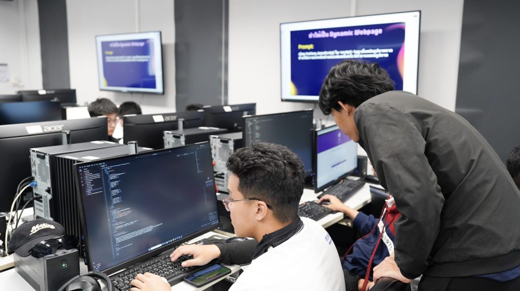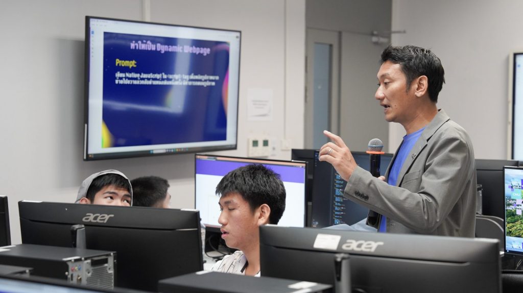 การจัดอบรมในครั้งนี้ มีวัตถุประสงค์เพื่อให้นักเรียนได้รับความรู้ความเข้าใจ และทักษะที่จำเป็นในการใช้เทคโนโลยีดิจิทัลอย่างสร้างสรรค์และมีประสิทธิภาพ โดยนักเรียนระดับมัธยมศึกษาชั้นปีที่ 4 ได้ฝึกปฏิบัติในหัวข้อ “Ai for WEB Management” เรียนรู้การประยุกต์ใช้ AI ในการออกแบบ UX/UI และการพัฒนา Web Application ด้วย Generative AI โดยได้รับเกียรติจาก อาจารย์ ดร.นพชัย วงค์สาย อาจารย์ประจำสาขาบูรณาการอุตสาหกรรมดิจิทัล เป็นวิทยากรผู้สอน