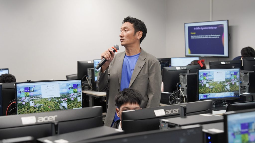 ส่วนนักเรียนมัธยมศึกษาชั้นปีที่ 5 สนุกไปกับหัวข้อ “AI for GAME” ปูพื้นฐานการออกแบบและพัฒนาเกมด้วยเทคโนโลยีสมัยใหม่ โดยได้รับเกียรติจาก อาจารย์ ดร.เทพฤทธิ์ สินธำรงรักษ์ อาจารย์ประจำดิจิทัลเกม เป็นวิทยากรผู้สอน ซึ่งกิจกรรมดังกล่าวจัดขึ้นในวันเสาร์ ที่ 31 มกราคม 2569 ณ อาคารศูนย์นวัตกรรมการเรียนรู้ วิทยาลัยศิลปะ สื่อ และเทคโนโลยี มหาวิทยาลัยเชียงใหม่