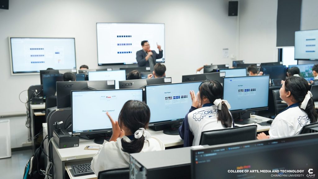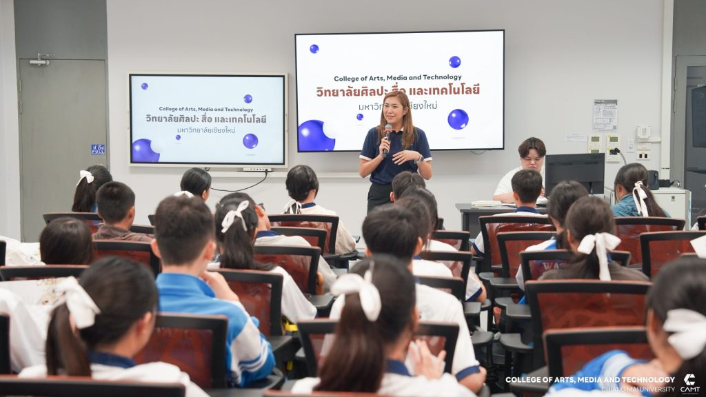 วิทยาลัยศิลปะ สื่อ และเทคโนโลยี จัดอบรมเชิงปฏิบัติการพัฒนาทักษะ Web Management สำหรับนักเรียนในระดับชั้นมัธยมศึกษาปีที่ 4 ห้องเรียนพิเศษวิทยาศาสตร์ คณิตศาสตร์ วิศวกรรมคอมพิวเตอร์และหุ่นยนต์ (Computer and Robotics Engineering : CRE) โรงเรียนวัฒโนทัยพายัพ จังหวัดเชียงใหม่ จำนวน 29 คน โดยมีวัตถุประสงค์เพื่อส่งเสริมและพัฒนาทักษะด้านเทคโนโลยีสารสนเทศที่จำเป็นในยุคปัจจุบัน รวมถึงเตรียมความพร้อมให้นักเรียนก้าวสู่โลกดิจิทัลอย่างมีประสิทธิภาพ กิจกรรมดังกล่าวสะท้อนให้เห็นถึงความมุ่งมั่นของวิทยาลัยฯ ในการส่งเสริมการเรียนรู้และพัฒนาเยาวชนให้มีความรู้ความสามารถด้านเทคโนโลยี เพื่อเป็นกำลังสำคัญในการขับเคลื่อนประเทศในยุคเศรษฐกิจดิจิทัลต่อไป ซึ่งกิจกรรมครั้งนี้ได้รับเกียรติจาก อาจารย์กฤตย์ จินกลับ อาจารย์ประจำสาขาบูรณาการอุตสาหกรรมดิจิทัล เป็นวิทยากรบรรยายให้ความรู้ ในวันที่ 23 กรกฎาคม 2568 ณ ห้อง C307 อาคารศูนย์นวัตกรรมการเรียนรู้ วิทยาลัยศิลปะ สื่อ และเทคโนโลยี
