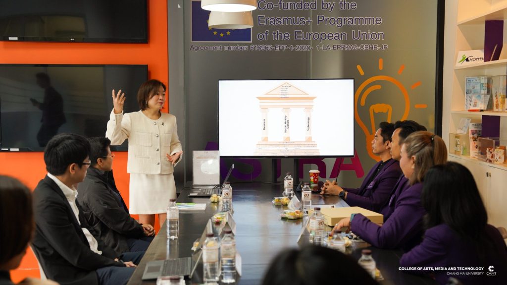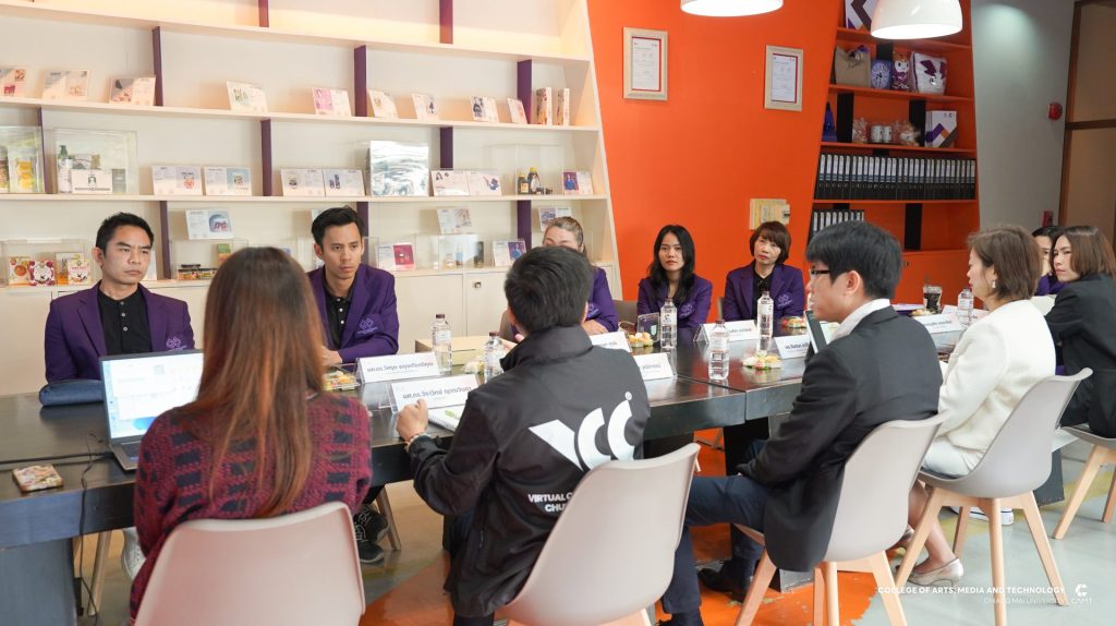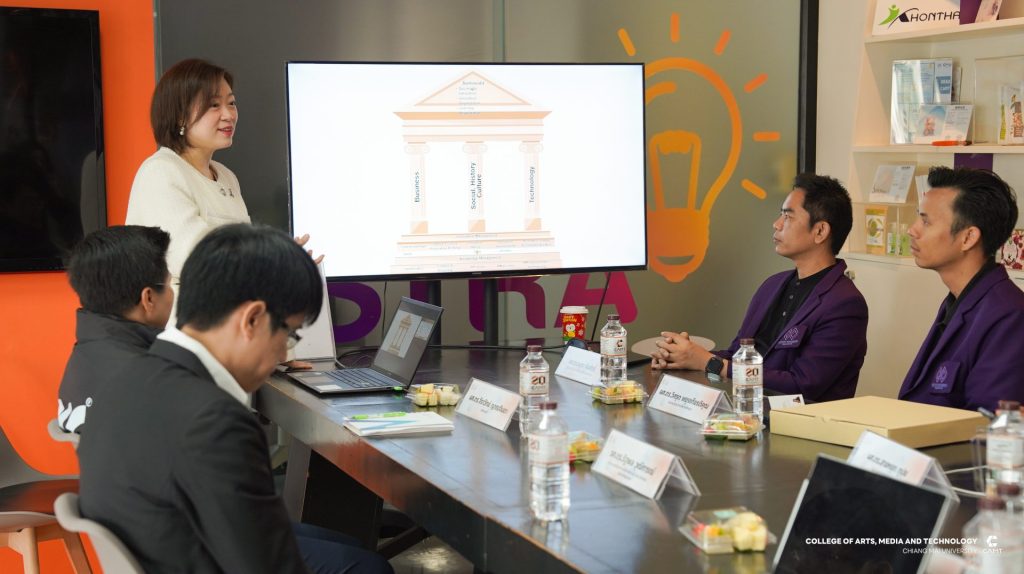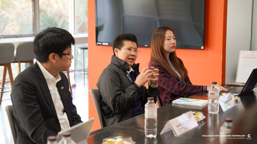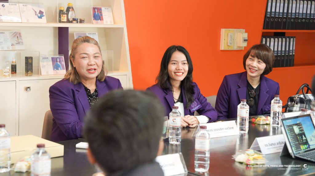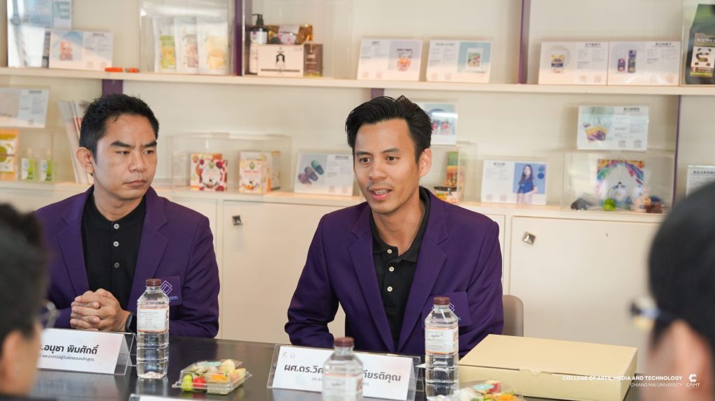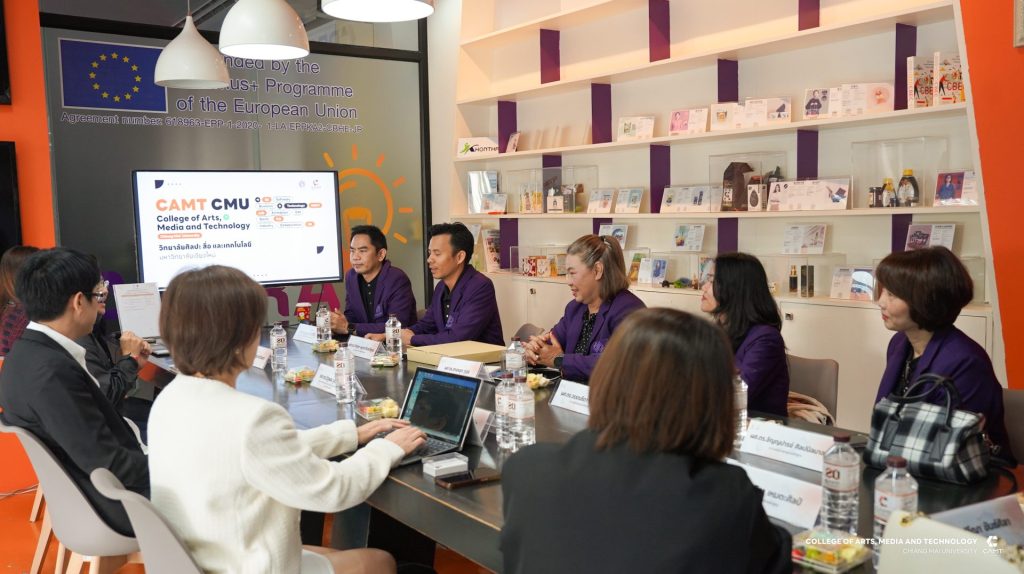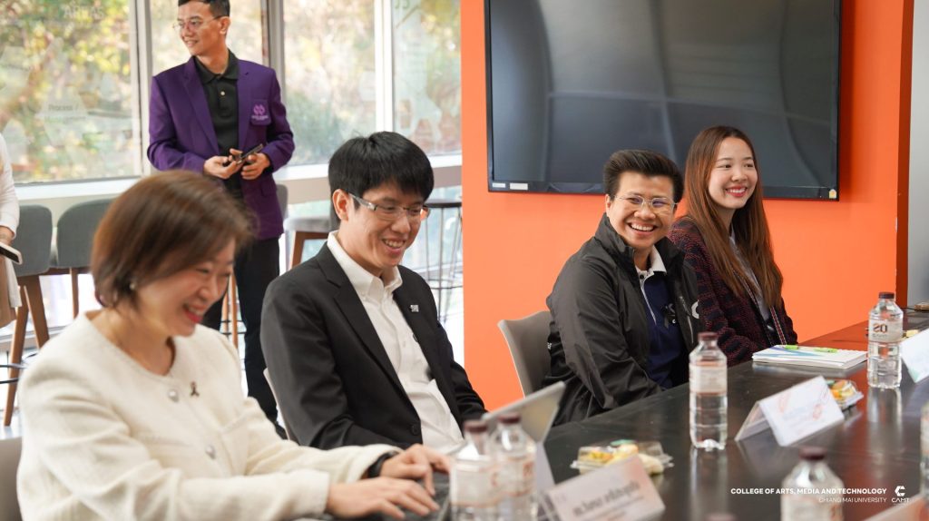 หลักสูตรการจัดการความรู้ และนวัตกรรม ระดับบัณฑิตศึกษา วิทยาลัยศิลปะ สื่อ และเทคโนโลยี มหาวิทยาลัยเชียงใหม่ นำโดยผู้ช่วยศาสตราจารย์ ดร.จิราวิทย์ ญาณจินดา รองคณบดี, รองศาสตราจารย์ ดร.รัฐพล วุฒิการณ์ ประธานหลักสูตรการจัดการความรู้และนวัตกรรม ระดับปริญญาเอก, อาจารย์ ดร.วันทนา อารีประยูรกิจ อาจารย์ประจำหลักสูตรการจัดการความรู้และนวัตกรรม ระดับปริญญาโทและเจ้าหน้าที่หลักสูตร ให้การต้อนรับคณะดูงานจากสาขาวิชานวัตกรรมการจัดการเรียนรู้ คณะศึกษาศาสตร์และนวัตกรรมการศึกษา มหาวิทยาลัยกาฬสินธุ์ ในโอกาสเข้าเยี่ยมชมหลักสูตรการเรียนการสอนของวิทยาลัยฯ รวมทั้งแลกเปลี่ยนเรียนรู้แนวปฏิบัติที่เป็นเลิศทางด้านการพัฒนาอาจารย์ การจัดการหลักสูตรและการดูแลนักศึกษา ตลอดจนการบูรณาการองค์ความรู้ เทคโนโลยีและนวัตกรรรม เพื่อยกระดับคุณภาพการจัดการศึกษาอย่างยั่งยืน ในวันที่ 15 มกราคม 2569 ณ วิทยาลัยศิลปะ สื่อ และเทคโนโลยี มหาวิทยาลัยเชียงใหม่