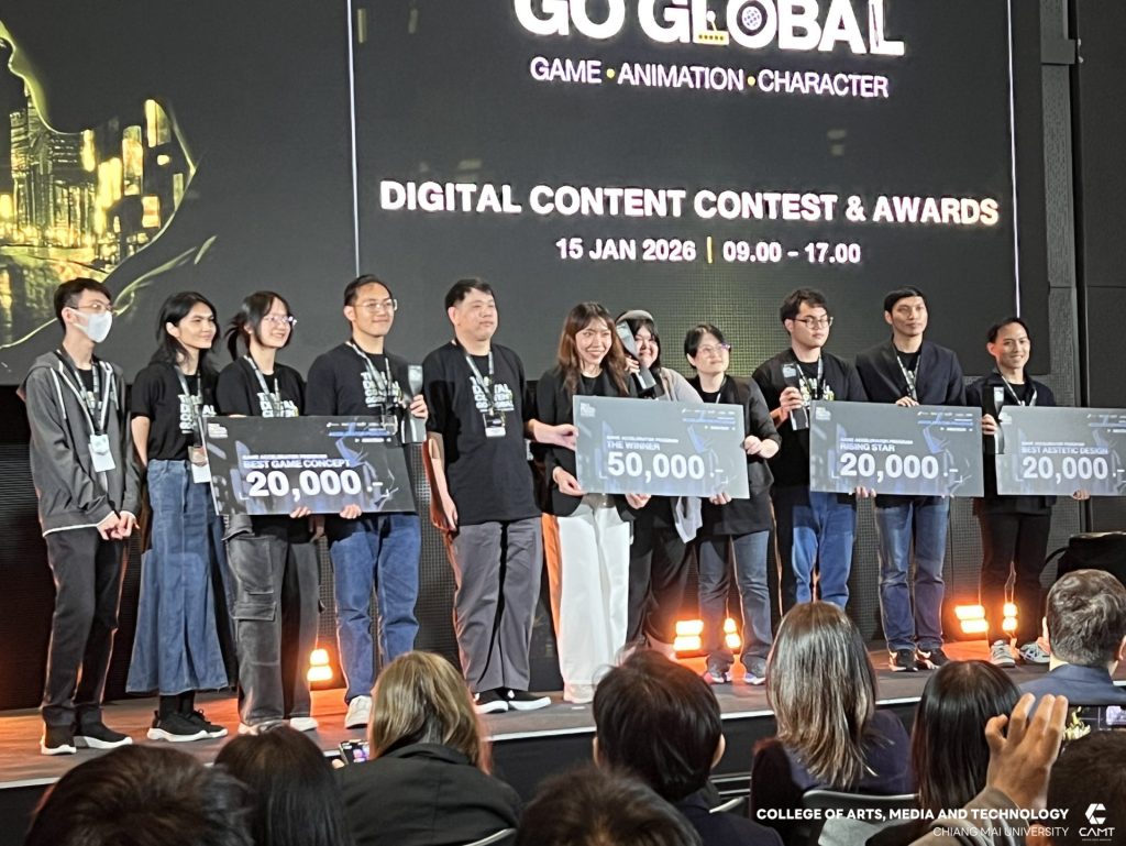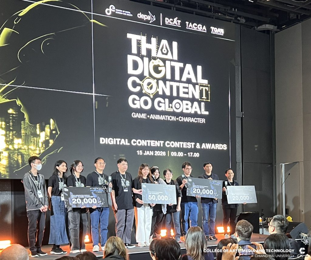 วิทยาลัยศิลปะ สื่อ และเทคโนโลยี มหาวิทยาลัยเชียงใหม่ สร้างชื่อวงการดิจิทัลคอนเทนต์ไทย หลังโชว์ศักยภาพเหนือชั้นกวาด 4 รางวัลอันทรงเกียรติจากเวที DIGITAL CONTENT CONTEST & AWARDS ภายใต้โครงการ Thai Digital Content Go Global เมื่อวันที่ 15 มกราคม 2569