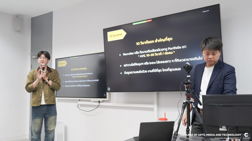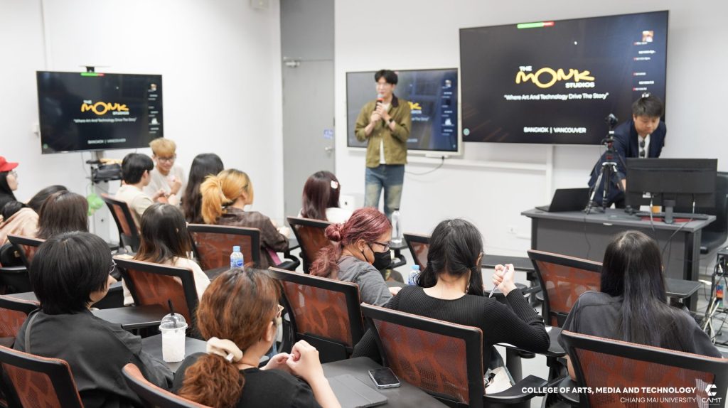 โดยภายในงานได้รับเกียรติจากคุณธนภัทร ธรรมธิ ตำแหน่ง Lead Technical Director และคุณศรุฒ นุ่มฤทธิ์ ตำแหน่ง HR จากบริษัท The Monk Studios มาร่วมแชร์เบื้องหลังการทำงานในสายเทคนิคอลแอนิเมชัน และมาตรฐานการทำงานในระดับอุตสาหกรรม พร้อมให้คำแนะนำในมุมมองของการคัดเลือกบุคลากร การเตรียม Portfolio และเทคนิคการสัมภาษณ์งานรวมถึงการปรับปรุงผลงาน (Showreel) ให้มีความโดดเด่นและตรงกับความต้องการของตลาดให้แก่นักศึกษา เมื่อวันพุธที่ 25 มีนาคม 2569 ณ วิทยาลัยศิลปะ สื่อ และเทคโนโลยี มหาวิทยาลัยเชียงใหม่
