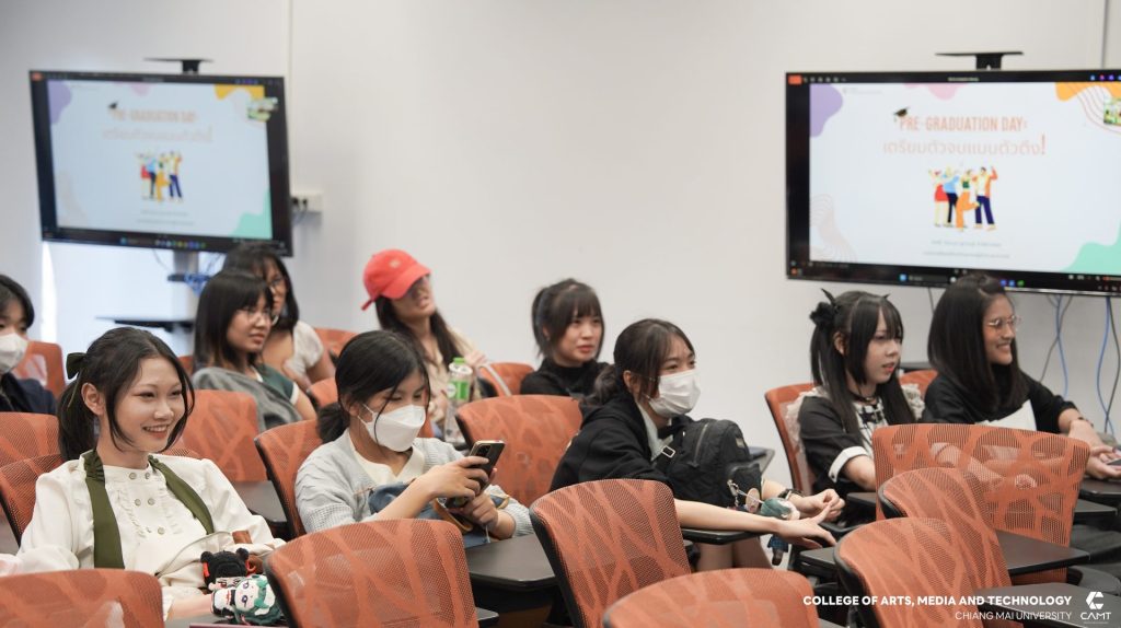 วิทยาลัยศิลปะ สื่อ และเทคโนโลยี มหาวิทยาลัยเชียงใหม่ จัดกิจกรรมเพื่อเตรียมความพร้อมให้กับว่าที่บัณฑิตในโครงการ “PRE-GRADUATION DAY” สำหรับนักศึกษาชั้นปีที่ 4 สาขาวิชาแอนนิเมชันและวิชวลเอฟเฟกต์ (Animation and Visual Effects) เพื่อติดอาวุธทางความคิดและทักษะการนำเสนอผลงานก่อนก้าวเข้าสู่โลกการทำงานอย่างมืออาชีพ