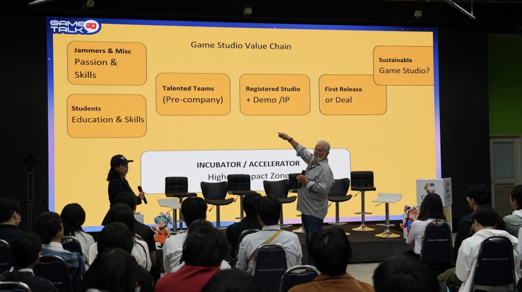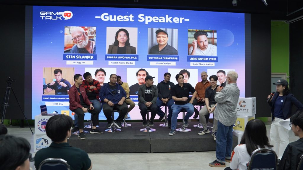 ไฮไลต์สำคัญของงานคือช่วง เสวนาประสาคนทำเกม (Seminar Panel Discussion)” ซึ่งเป็นการรวมตัวกันของเหล่ากูรูจากสตูดิโอชั้นนำระดับประเทศและระดับสากล นำโดย อาจารย์ ดร.ศุภรา กรุดพันธ์ จาก Naplab Game Studio พร้อมด้วยทัพวิทยากรผู้ทรงคุณวุฒิ อาทิ: