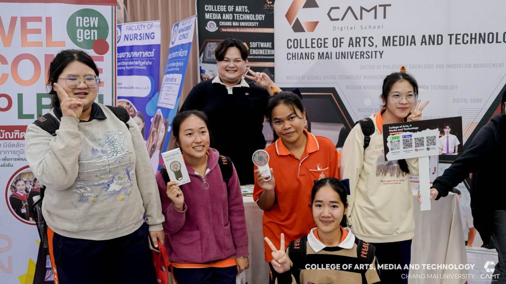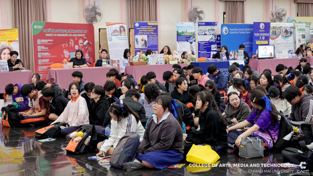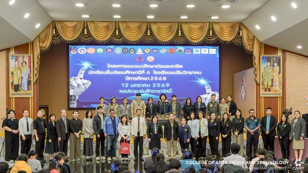 วิทยาลัยศิลปะ สื่อ และเทคโนโลยี มหาวิทยาลัยเชียงใหม่ ได้เข้าร่วมจัดนิทรรศการใน “โครงการวันแนะแนวศึกษาต่อและอาชีพประจำปีการศึกษา 2568” ณ โรงเรียนแม่ริมวิทยาคม เพื่อประชาสัมพันธ์หลักสูตรโดยมีรุ่นพี่และเจ้าหน้าที่จากหน่วยประชาสัมพันธ์ร่วมให้คำแนะนำ ซึ่งกิจกรรมดังกล่าวมีสถาบันการศึกษาเข้าร่วมกว่า 20 สถาบัน โดยจัดขึ้นเมื่อวันที่ 12 มกราคม 2569 ณ ห้องประชุมร่มฟ้าดารารัศมิ์ โรงเรียนแม่ริมวิทยาคม จังหวัดเชียงใหม่