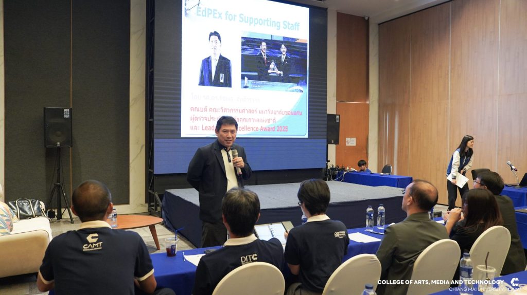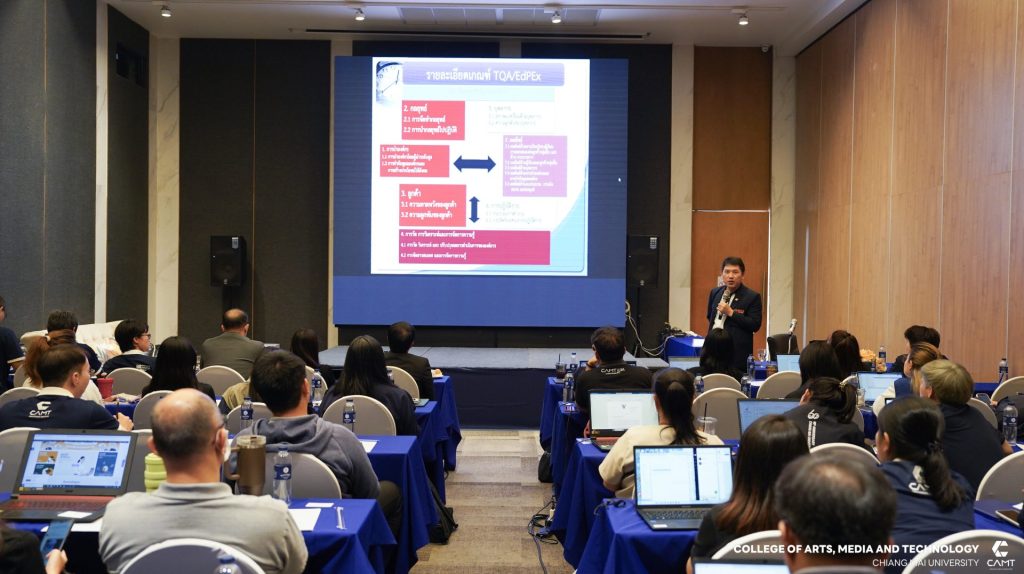 วิทยาลัยศิลปะ สื่อ และเทคโนโลยี มหาวิทยาลัยเชียงใหม่ เดินหน้าขับเคลื่อนยุทธศาสตร์องค์กรสู่มาตรฐานสากล จัดอบรม “การขับเคลื่อนงานสายสนับสนุนสู่ความเป็นเลิศด้วยเกณฑ์ EdPEx” เพื่อสร้างความเข้าใจเชิงลึกเกี่ยวกับเกณฑ์คุณภาพการศึกษาเพื่อการดำเนินงานที่เป็นเลิศ พร้อมถ่ายทอดแนวปฏิบัติในการนำเกณฑ์ไปใช้จริงเพื่อสร้างความได้เปรียบเชิงยุทธศาสตร์ ในการนี้ ได้รับเกียรติจาก รองศาสตราจารย์ ดร.รัชพล สันติวรากร คณบดีคณะวิศวกรรมศาสตร์ มหาวิทยาลัยขอนแก่น ผู้เชี่ยวชาญด้านการบริหารจัดการองค์กร ให้เกียรติเป็นวิทยากรบรรยายพร้อมแบ่งปันประสบการณ์จริงในการนำพาองค์กรสู่ความสำเร็จ เพื่อให้ผู้บริหารและบุคลากร CAMT สามารถนำองค์ความรู้ไปบูรณาการและปรับปรุงกระบวนการทำงานให้เกิดประสิทธิภาพสูงสุด เมื่อวันที่ 21 เมษายน 2569 ณ โรงแรมวินทรี ซิตี้ รีสอร์ท เชียงใหม่