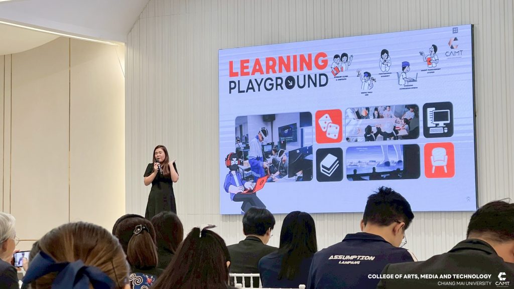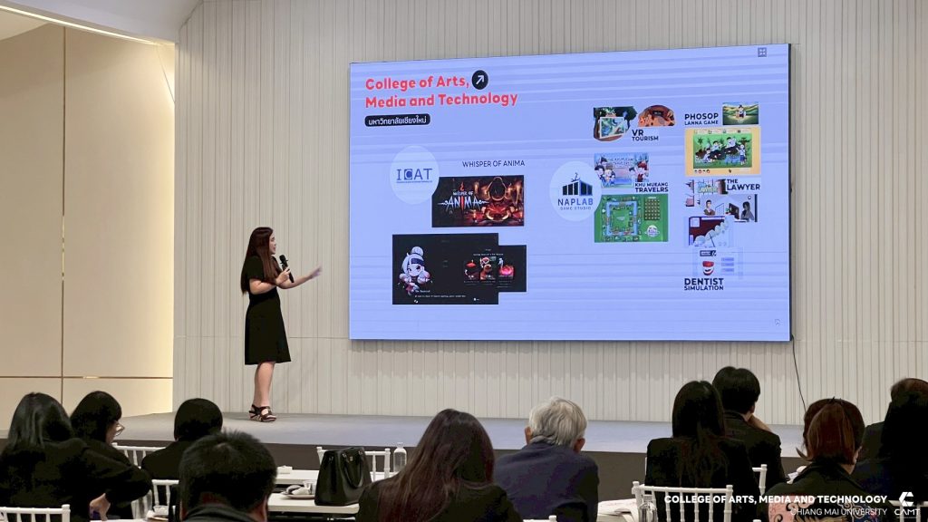 ภายในงาน ผู้ช่วยศาสตราจารย์ ดร.สุมาลี สง่าเมือง อาจารย์ประจำสาขาดิจิทัลเกม ได้ให้เกียรติเป็นผู้แทนวิทยาลัยฯ ในการประชาสัมพันธ์ข้อมูลหลักสูตรและเกณฑ์การรับเข้าศึกษา โดยเน้นย้ำถึงความพร้อมของวิทยาลัยฯ ในการผลิตบัณฑิตที่มีทักษะแห่งอนาคต เพื่อรองรับการเปลี่ยนแปลงของอุตสาหกรรมดิจิทัล