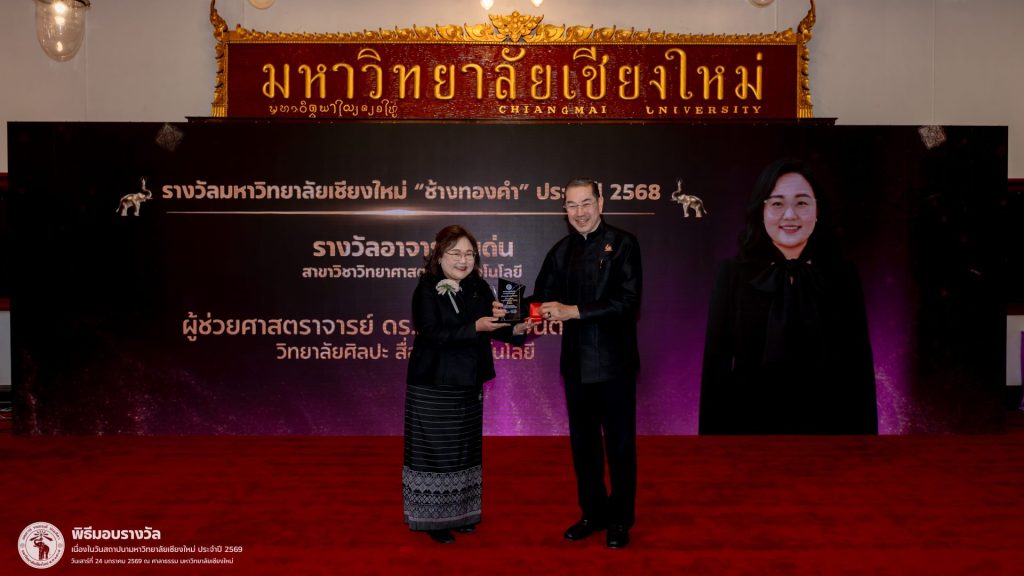 โดยในปีนี้ วิทยาลัยศิลปะ สื่อ และเทคโนโลยี มีผู้ได้รับรางวัลมหาวิทยาลัยเชียงใหม่ “ช้างทองคำ” ประจำปี 2568 จำนวน 2 ท่าน ได้แก่