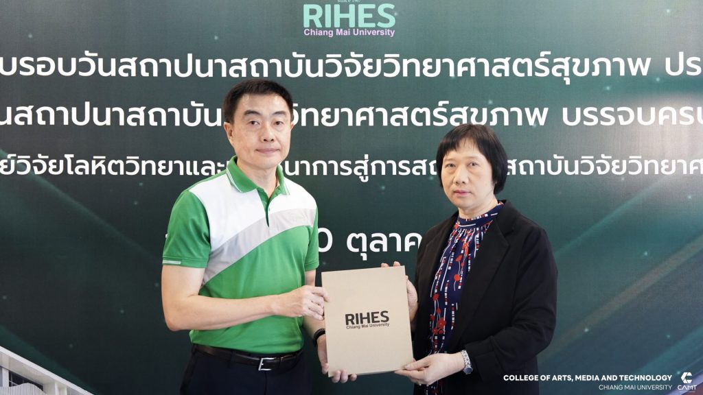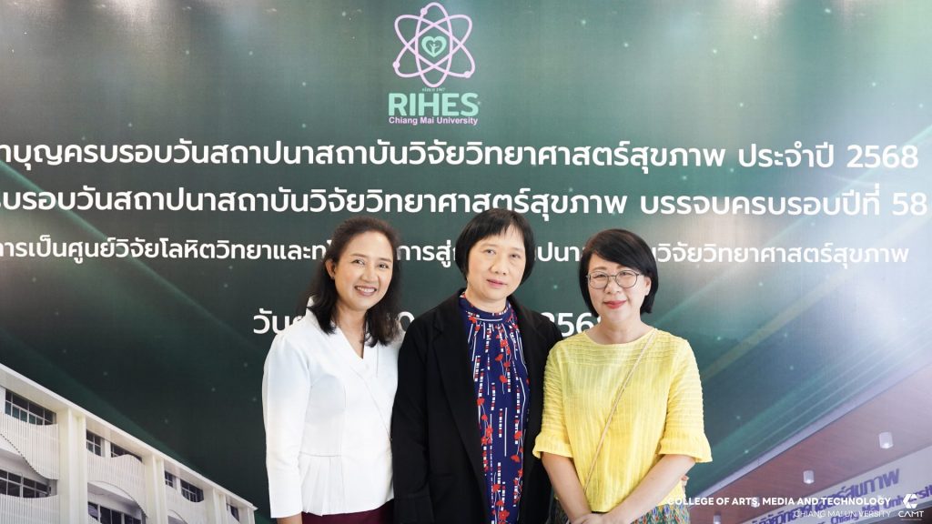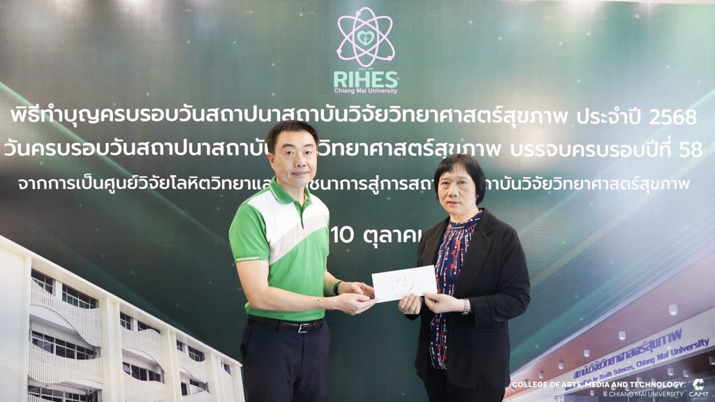 นางสาวปิยาภรณ์ ณ เชียงใหม่ เลขานุการวิทยาลัยศิลปะ สื่อ และเทคโนโลยี มหาวิทยาลัยเชียงใหม่ ร่วมแสดงความยินดีในพิธีทำบุญวันคล้ายวันสถาปนาสถาบันวิจัยวิทยาศาสตร์สุขภาพ มหาวิทยาลัยเชียงใหม่ The Research Institute for Health Sciences (RIHES) ประจำปี 2568 เนื่องในโอกาสครบรอบ 58 ปี โดยมี ศาสตราจารย์นายแพทย์เกรียงไกร ศรีธนวิบุญชัย ผู้อำนวยการสถาบัน และเจ้าหน้าที่สถาบันวิจัยวิทยาศาสตร์สุขภาพ ให้การต้อนรับอย่างอบอุ่นในวันศุกร์ที่ 10 ตุลาคม 2568 ณ สถาบันวิจัยวิทยาศาสตร์สุขภาพ มหาวิทยาลัยเชียงใหม่