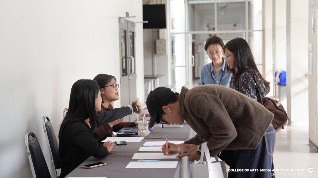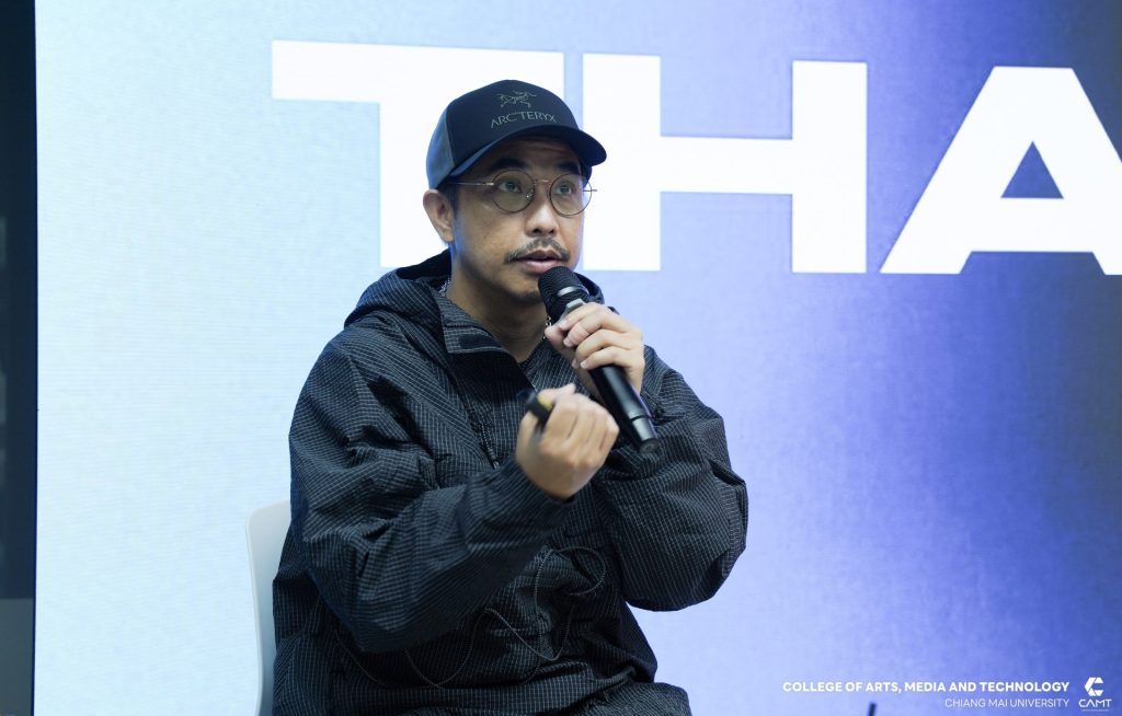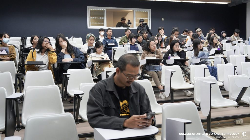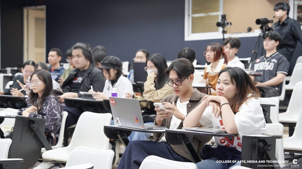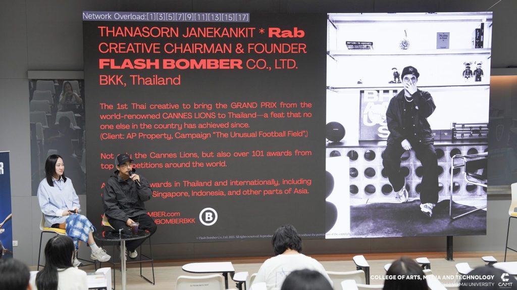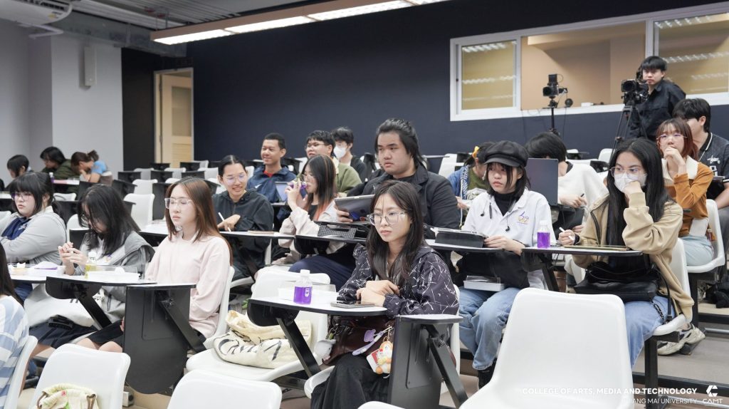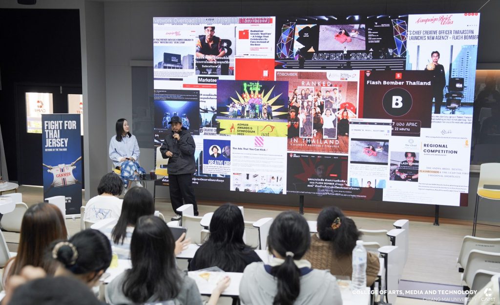 จากบริษัท Flash Bomber และคุณปธิดา อัครจินดานนท์ Deputy Executive Creative Director จากบริษัท Wolf BKK มาร่วมเป็นวิทยากรแบ่งปันประสบการณ์ตรงในสายงาน Creative Digital พร้อมทั้งแชร์ประสบการณ์ภาพรวมอุตสาหกรรมโฆษณาและครีเอทีฟระดับโลก (Global Trend) เมื่อวันศุกร์ที่ 20 กุมภาพันธ์ 2569 ณ ห้อง slope 113 ชั้น 1 อาคารวิทยาลัยศิลปะ สื่อและเทคโนโลยี มหาวิทยาลัยเชียงใหม่