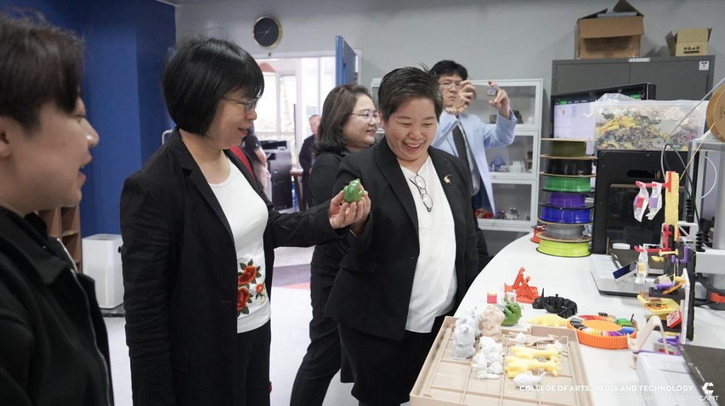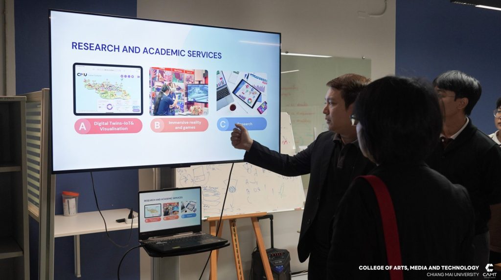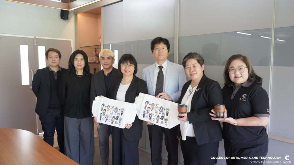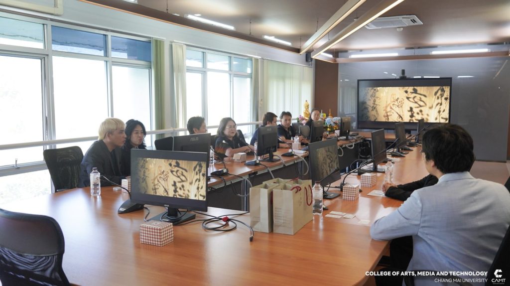 วิทยาลัยศิลปะ สื่อ และเทคโนโลยี มหาวิทยาลัยเชียงใหม่ นำโดย ผู้ช่วยศาสตราจารย์ ดร.อรุษ คุณเขต ผู้ช่วยคณบดี พร้อมด้วย ผู้ช่วยศาสตราจารย์ ดร.ภัทรพร คูวุฒยากร อาจารย์ประจำสาขาการจัดการสมัยใหม่ และเทคโนโลยีสารสนเทศ ผู้ช่วยศาสตราจารย์ ดร.มณิษวาส จินตพิทักษ์ อาจารย์ประจำสาขาแอนนิเมชันและวิชวลเอฟเฟกต์ ผู้ช่วยศาสตราจารย์ ดร.เฉลิมพล คงจิตต์ อาจารย์ประจำสาขาการจัดการความรู้และนวัตกรรม และอาจารย์ ดร.เทพฤทธิ์ สินธำรงรักษ์ เลขานุการสาขาวิชาดิจิทัลเกม อาจารย์ ดร.ศุภรา กรุดพันธ์ อาจารย์ประจำสาขาวิชาดิจิทัลเกม และบุคลากรของวิทยาลัยฯ ร่วมให้การต้อนรับคณะศึกษาดูงานจาก National Taiwan University of Arts นำโดย Dr.Cha-Lin LIU, D.M.A Vice President for Academic Affairs Professor, Department of Multimedia and Animation Arts National Taiwan University of Artsพร้อมด้วย Kung-Yen Lee, Ph.D. Professor, Department of Engineering Science and Ocean Engineering Deputy Director, NTU-ITRI Nano Center