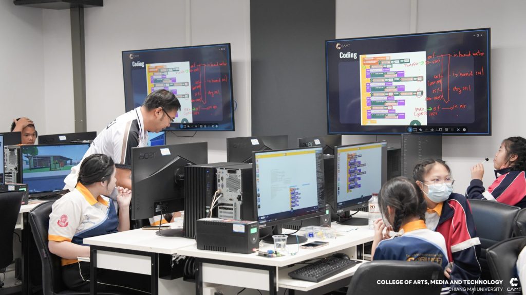 วิทยาลัยศิลปะ สื่อ และเทคโนโลยี มหาวิทยาลัยเชียงใหม่ เดินหน้าสร้างนิเวศการเรียนรู้ด้านเทคโนโลยี จัดอบรมเชิงปฏิบัติการในหัวข้อ “การสร้างระบบ Smart Home” และหัวข้อ “Ai for WEB Management” ให้แก่นักเรียนชั้นมัธยมศึกษาตอนต้น (ม.2) จากโครงการห้องเรียนวิทยาศาสตร์พลังสิบ โรงเรียนยุพราชวิทยาลัย จำนวน 40 คน เพื่อมุ่งเน้นการสร้างแรงบันดาลใจด้านดิจิทัลเทคโนโลยี และการสร้างนวัตกรรมที่ตอบโจทย์วิถีชีวิตยุคใหม่ โดยนักเรียนจะได้เรียนรู้การใช้งานอุปกรณ์อิเล็กทรอนิกพื้นฐาน และการใช้งานเซ็นเซอร์ เพื่อตรียมความพร้อมทักษะการสร้างนวัตกรรมบ้านอัจฉริยะ (Smart Home Ecosystem) และการประยุกต์ใช้ Generative AI ในการออกแบบ User Interface (UX/UI)