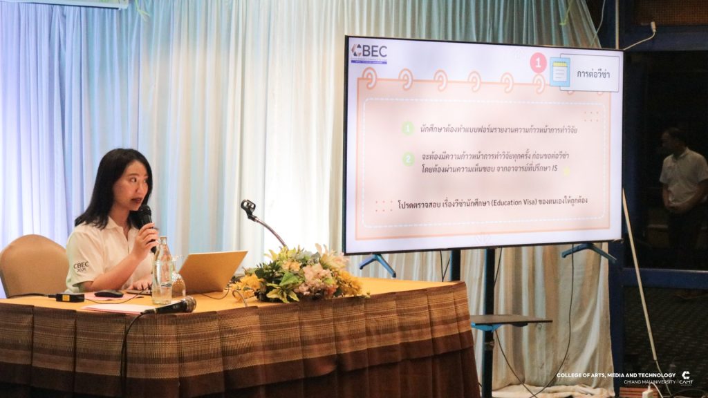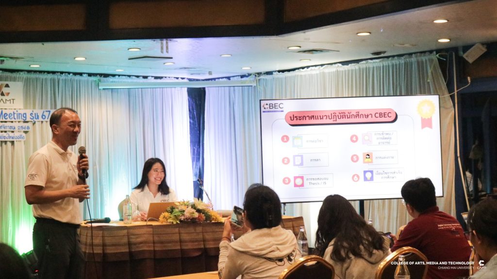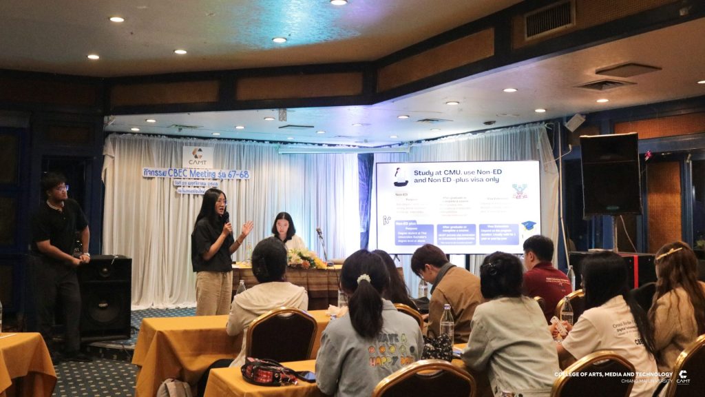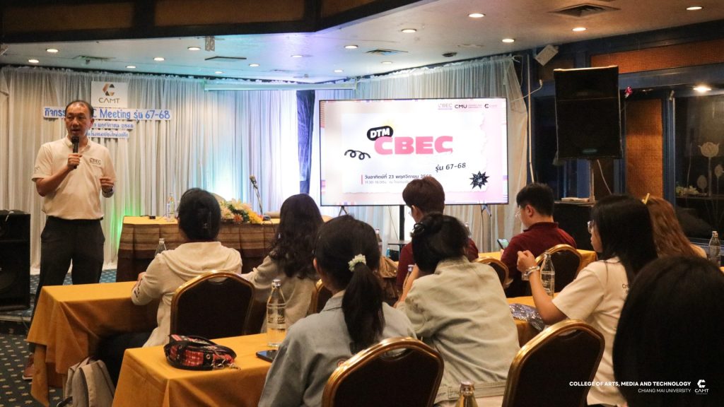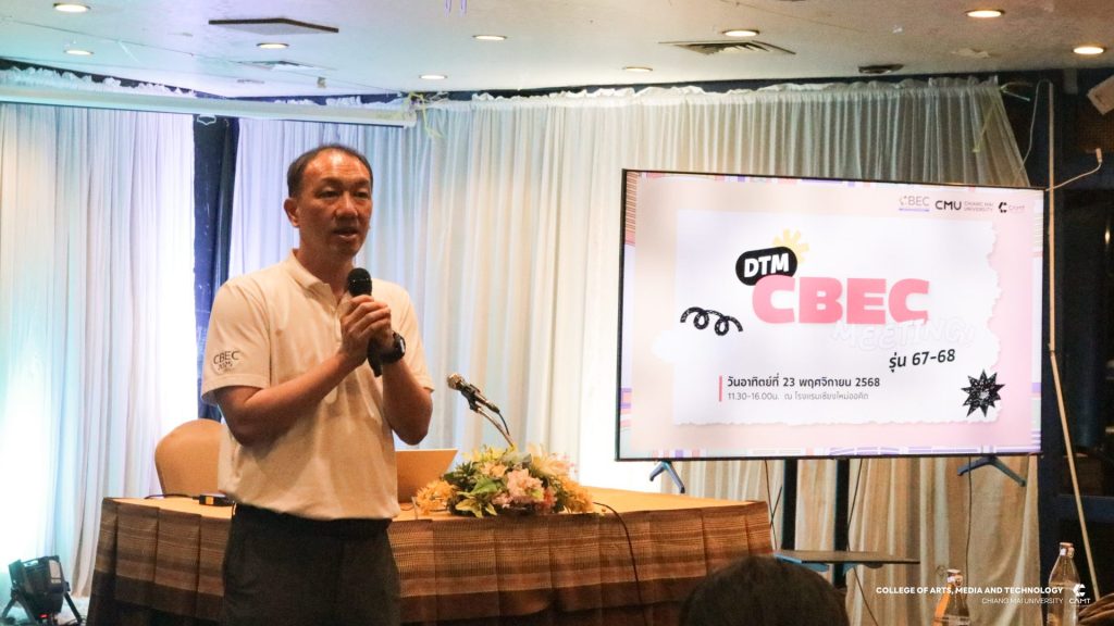 หลักสูตรการจัดการเทคโนโลยีดิจิทัล แขนงพาณิชย์อิเล็กทรอนิกส์ข้ามพรมแดน (CBEC) ระดับบัณฑิตศึกษา วิทยาลัยศิลปะ สื่อ และเทคโนโลยี มหาวิทยาลัยเชียงใหม่ จัดกิจกรรม “CBEC Meeting พบรุ่น 67–68” ภายใต้โครงการ Business Matching & Coaching กิจกรรมครั้งนี้จัดขึ้นอย่างอบอุ่นและเต็มไปด้วยพลังของการเรียนรู้ นำทีมโดย ผู้ช่วยศาสตราจารย์ ดร.ดนัยธัญ พงษ์พัชราธรเทพ รองคณบดี, ผู้ช่วยศาสตราจารย์ ดร.สิริกร สันติโรจนกุล และ อาจารย์ ดร.ชมภัช มาลังค์ พร้อมด้วยนักศึกษาระดับปริญญาโท Track CBEC ที่เข้าร่วมกันอย่างคึกคัก ตลอดการพบปะ มีการชี้แจงข้อมูลสำคัญเพื่อเตรียมความพร้อมให้นักศึกษา อาทิเช่น แนวปฏิบัติด้าน วีซ่าสำหรับนักศึกษาต่างชาติ, แนวปฏิบัติของนักศึกษา CBEC, Timeline การศึกษา, การสอบ Proposal ไปจนถึง ขั้นตอนการสำเร็จการศึกษา เพื่อสร้างความรู้ ความเข้าใจ และความสัมพันธ์อันดีระหว่างคณาจารย์และนักศึกษากิจกรรมจัดขึ้น เมื่อวันที่ 23 พฤศจิกายน 2568 เวลา 11.30 – 16.00 น. ณ โรงแรมเชียงใหม่ออคิด จังหวัดเชียงใหม่