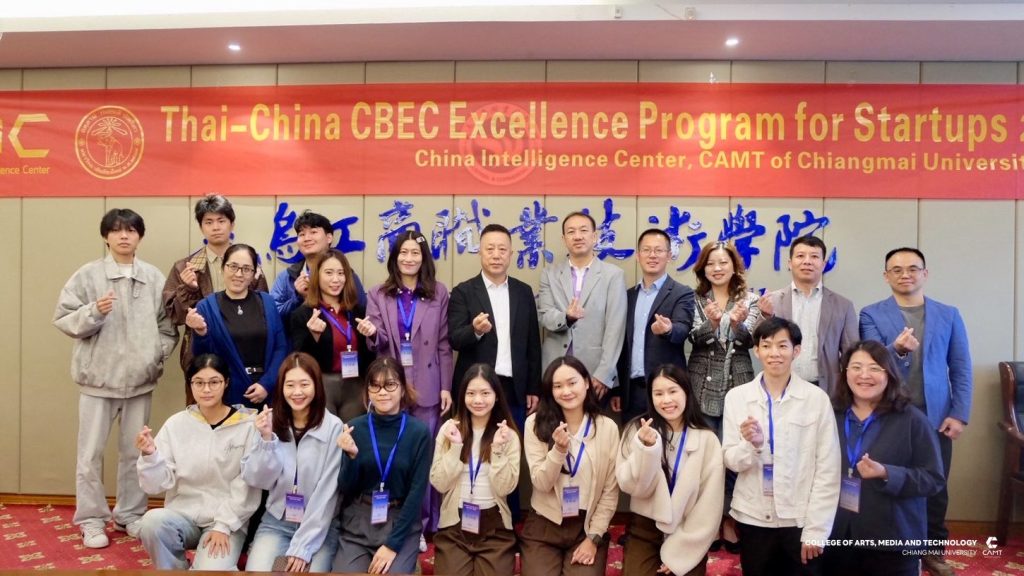 หลักสูตรการจัดการเทคโนโลยีดิจิทัล แขนงวิชาพาณิชย์อิเล็กทรอนิกส์ข้ามพรมแดน (CBEC : Cross-Border E-Commerce) ระดับบัณฑิตศึกษา วิทยาลัยศิลปะ สื่อ และเทคโนโลยี มหาวิทยาลัยเชียงใหม่ ร่วมกับ ศูนย์ CIC China Intelligence Center จัดกิจกรรม “Thai–China CBEC Excellence for Start-Up Season 2” (รุ่นที่ 2) ระหว่างวันที่ 21 – 23 ตุลาคม 2568 ณ เมืองอี้อู มณฑลเจ้อเจียง สาธารณรัฐประชาชนจีน นำโดย ผู้ช่วยศาสตราจารย์ ดร.ดนัยธัญ พงษ์พัชราธรเทพ รองคณบดี พร้อมด้วยนักศึกษาและทีมงานเข้าร่วม โดยกิจกรรมดังกล่าวมุ่งเน้นการพัฒนาองค์ความรู้ด้าน Digital Trade และ Digital CBEC Procedure เพื่อเสริมศักยภาพผู้เรียนและผู้ประกอบการรุ่นใหม่ ให้สามารถต่อยอดสู่การเป็น CBEC Start-Up ที่พร้อมแข่งขันในตลาดจีนได้อย่างมั่นใจและยั่งยืน ภายในกิจกรรมผู้เข้าร่วมได้เข้าฟังการบรรยายในหัวข้อ “Introduction to the Current Situation of Inbound CBEC, and Customer Behavior of Chinese Consumers to Foreign Products” และ “Digital Marketing and Live Commerce Operation” ซึ่งเป็นการเปิดมุมมองใหม่เกี่ยวกับพฤติกรรมผู้บริโภคชาวจีนและแนวทางการทำตลาดออนไลน์อย่างมีประสิทธิภาพ ณ Smart Hall, Yiwu Industrial & Commercial College โดยได้รับเกียรติ Mr. Fan Yao, รองอธิการบดี Yiwu Industrial & Commercial College ให้การต้อนรับ