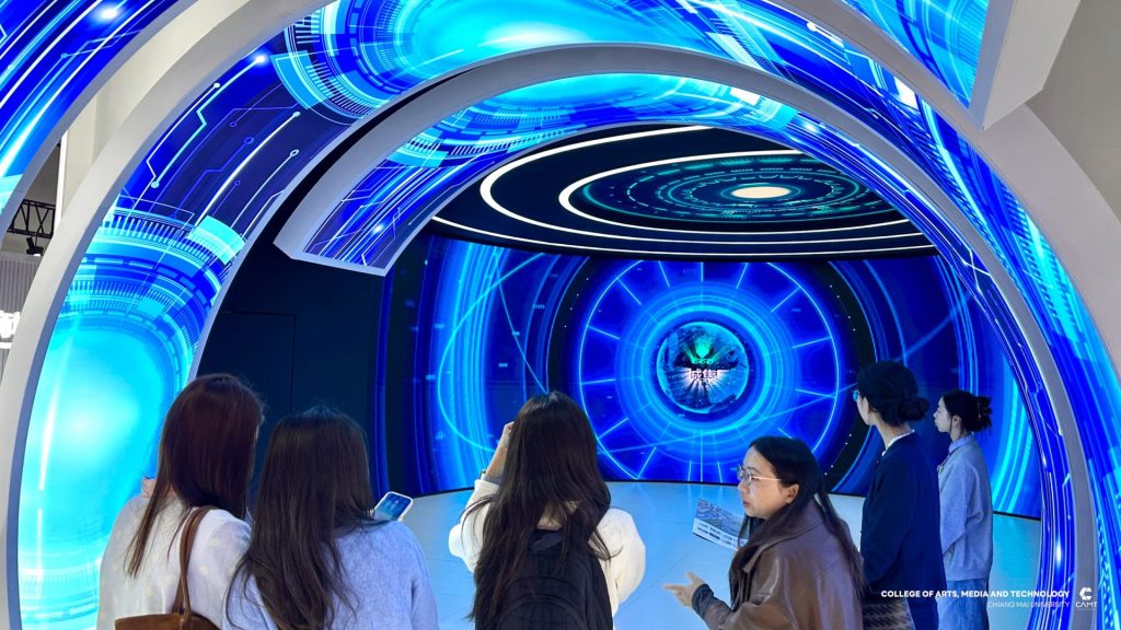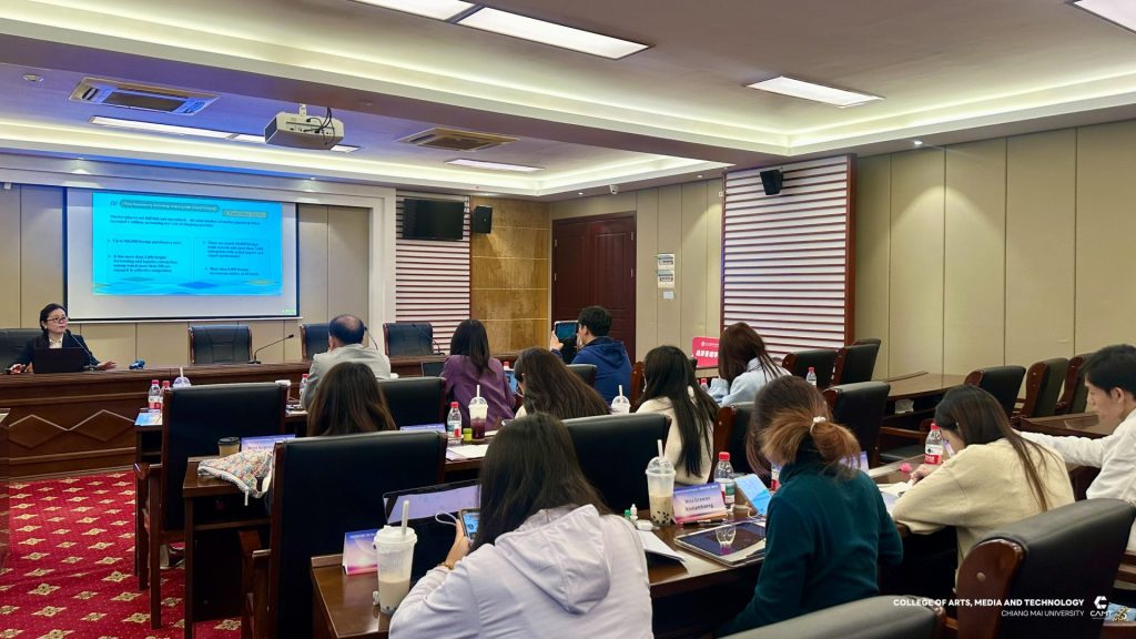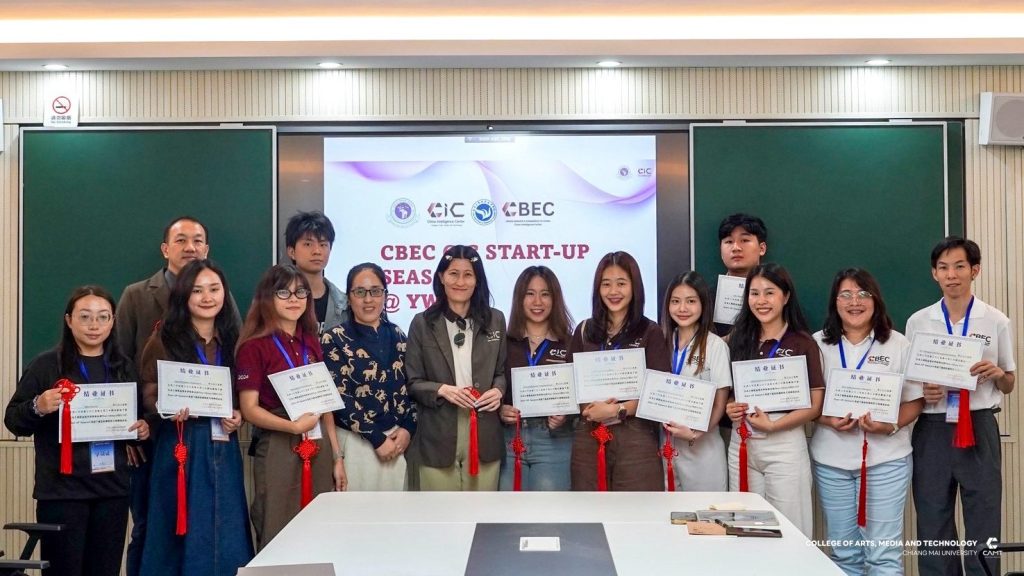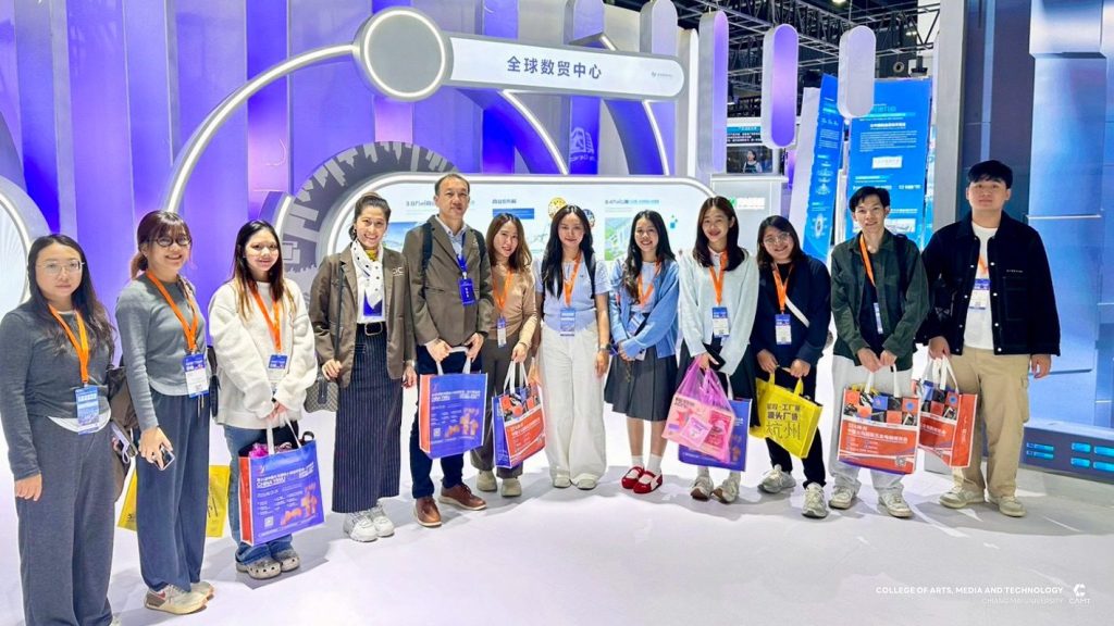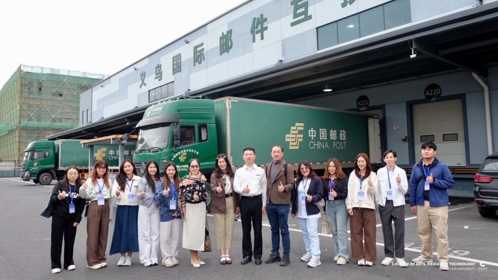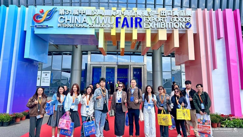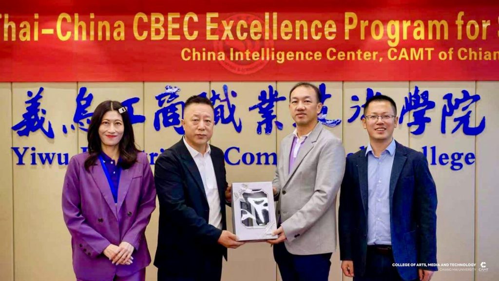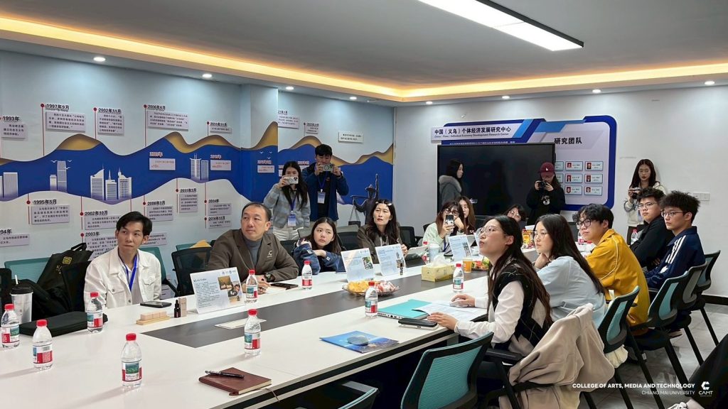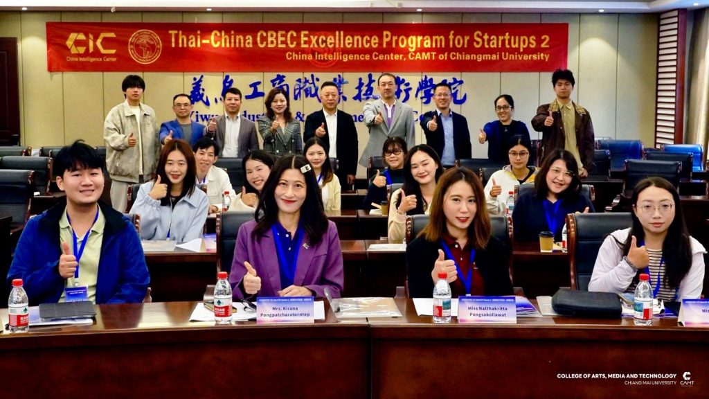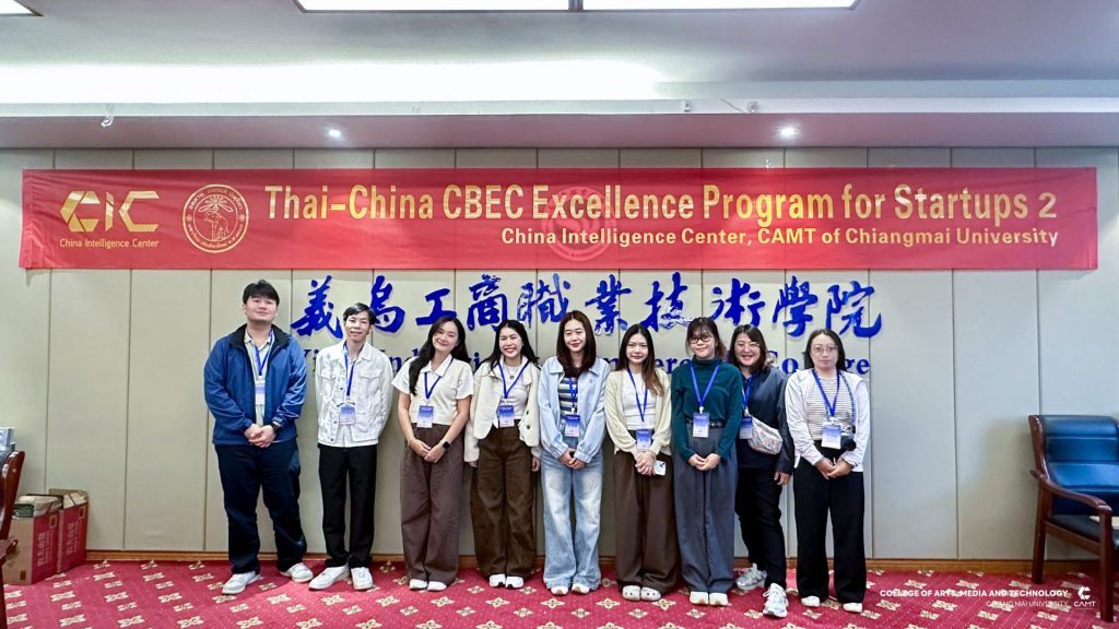 หลักสูตรการจัดการเทคโนโลยีดิจิทัล แขนงวิชาพาณิชย์อิเล็กทรอนิกส์ข้ามพรมแดน (CBEC : Cross-Border E-Commerce) ระดับบัณฑิตศึกษา วิทยาลัยศิลปะ สื่อ และเทคโนโลยี มหาวิทยาลัยเชียงใหม่ ร่วมกับ ศูนย์ CIC China Intelligence Center จัดกิจกรรม “Thai–China CBEC Excellence for Start-Up Season 2” (รุ่นที่ 2) ระหว่างวันที่ 21 – 23 ตุลาคม 2568 ณ เมืองอี้อู มณฑลเจ้อเจียง สาธารณรัฐประชาชนจีน นำโดย ผู้ช่วยศาสตราจารย์ ดร.ดนัยธัญ พงษ์พัชราธรเทพ รองคณบดี พร้อมด้วยนักศึกษาและทีมงานเข้าร่วม โดยกิจกรรมดังกล่าวมุ่งเน้นการพัฒนาองค์ความรู้ด้าน Digital Trade และ Digital CBEC Procedure เพื่อเสริมศักยภาพผู้เรียนและผู้ประกอบการรุ่นใหม่ ให้สามารถต่อยอดสู่การเป็น CBEC Start-Up ที่พร้อมแข่งขันในตลาดจีนได้อย่างมั่นใจและยั่งยืน ภายในกิจกรรมผู้เข้าร่วมได้เข้าฟังการบรรยายในหัวข้อ “Introduction to the Current Situation of Inbound CBEC, and Customer Behavior of Chinese Consumers to Foreign Products” และ “Digital Marketing and Live Commerce Operation” ซึ่งเป็นการเปิดมุมมองใหม่เกี่ยวกับพฤติกรรมผู้บริโภคชาวจีนและแนวทางการทำตลาดออนไลน์อย่างมีประสิทธิภาพ ณ Smart Hall, Yiwu Industrial & Commercial College โดยได้รับเกียรติ Mr. Fan Yao, รองอธิการบดี Yiwu Industrial & Commercial College ให้การต้อนรับ